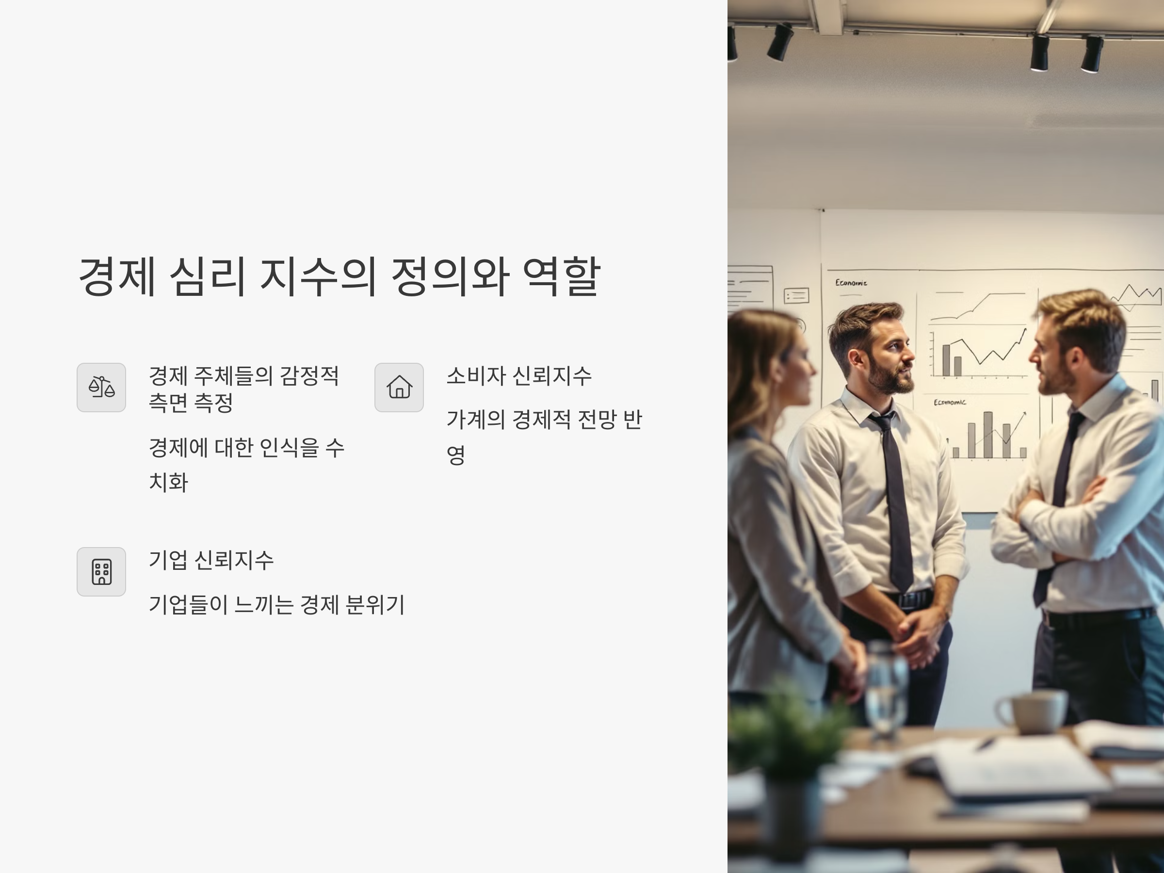 경제 심리 지수는 일반적으로 경제 주체들이 경제를 어떻게 인식하고 있는지에 대한 감정적 측면을 측정하는 지표입니다. 특히 소비자 신뢰지수는 가계의 경제적 전망을 반영하며, 기업 신뢰지수는 기업들이 느끼는 경제 전반의 분위기를 나타냅니다. 이러한 지수는 경제 성장과 소비, 투자 등을 예측하는 중요한 역할을 합니다.