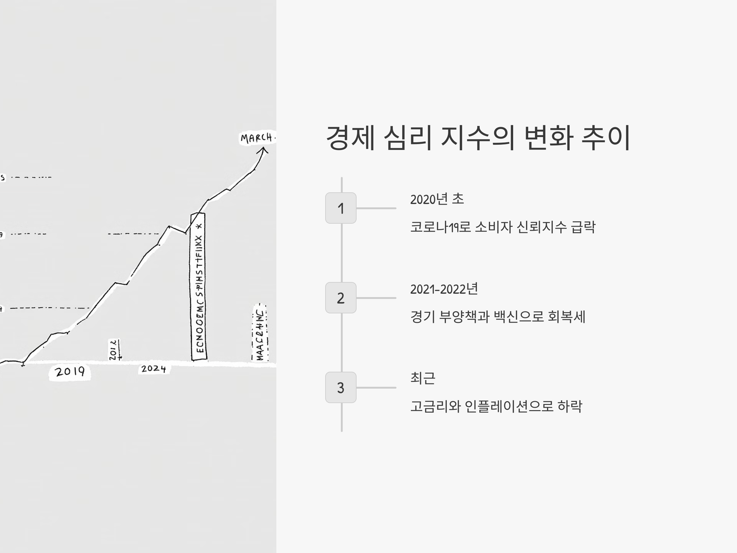 최근 경제 심리 지수는 여러 경제적 요인에 의해 영향을 받고 있습니다. 코로나19 팬데믹, 글로벌 공급망 차질, 고금리 정책 등은 모두 경제 심리 지수에 큰 영향을 미쳤습니다. 이러한 지표는 단순히 경제적인 변화를 추적하는 것뿐만 아니라, 사람들의 감정적 반응을 나타내기 때문에 경제 회복 여부와 그 속도도 예측할 수 있게 해줍니다.