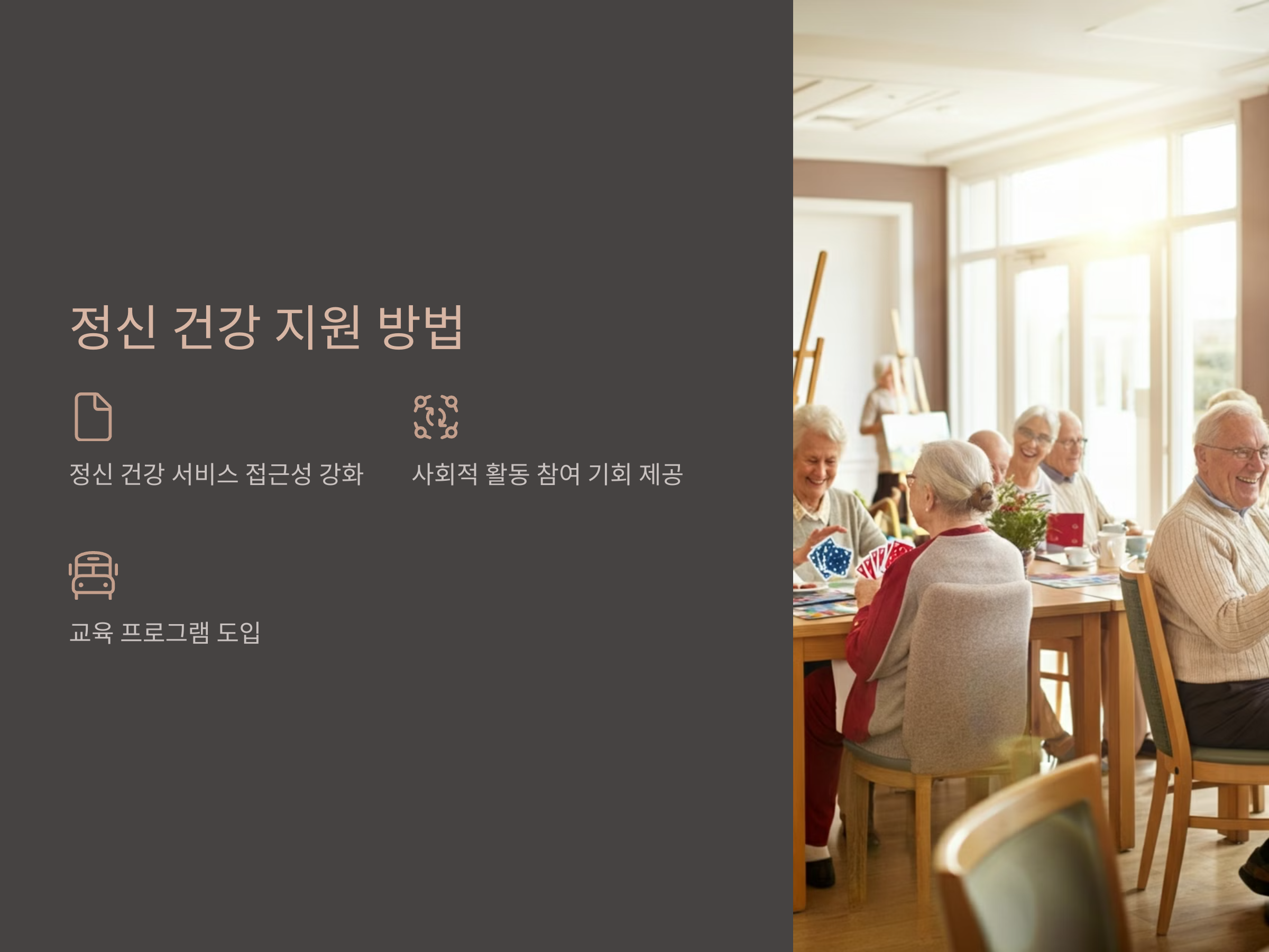 - 사회적 활동 참여 기회 제공