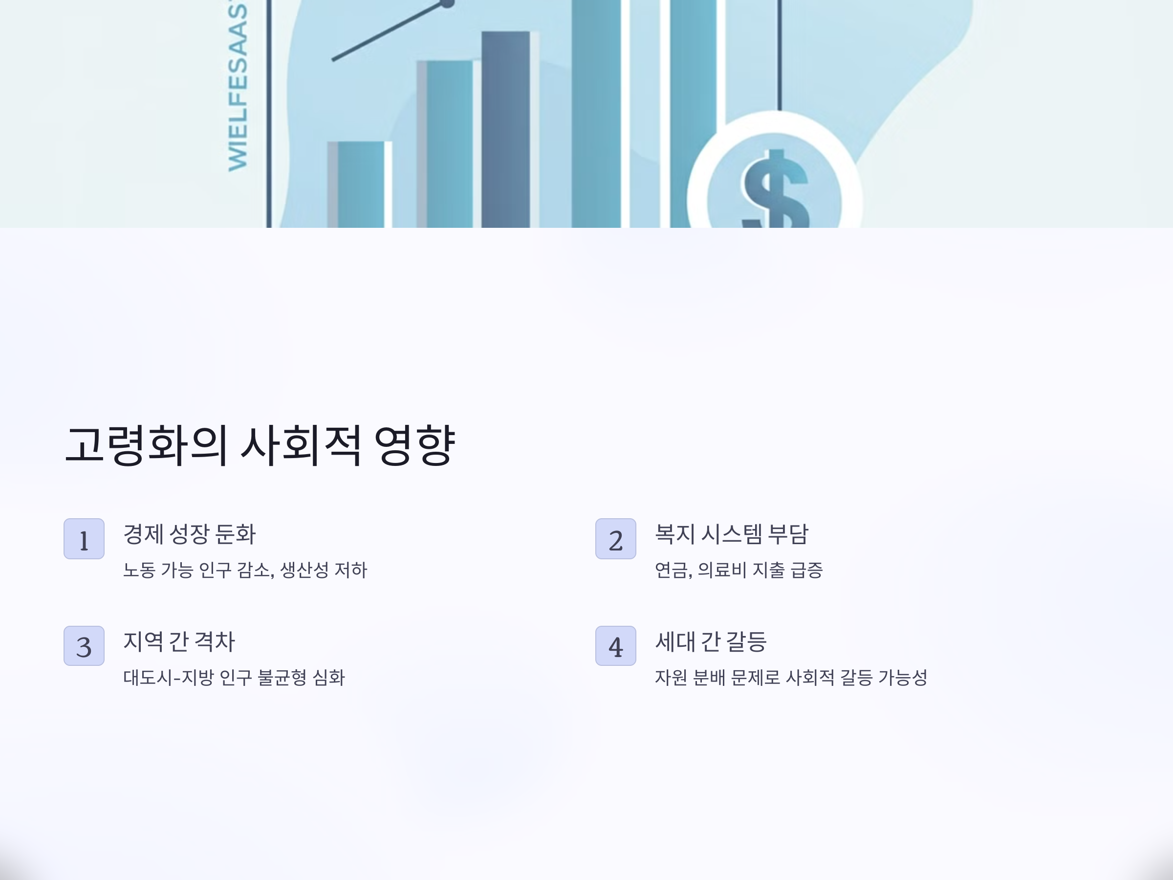 고령화는 단순히 고령 인구가 늘어나는 현상을 넘어 경제, 노동시장, 건강 관리 시스템에 심대한 영향을 미칩니다.