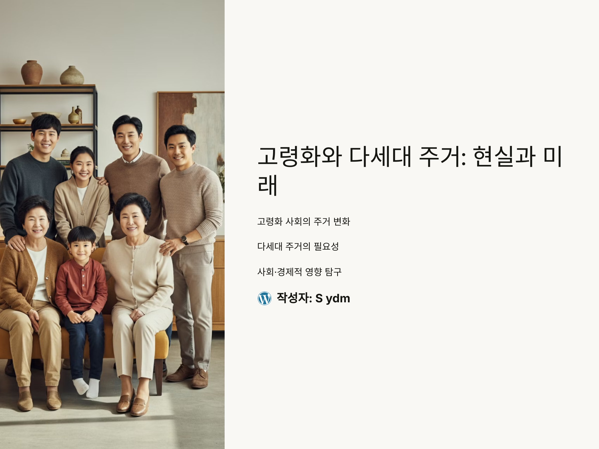고령화가 빠르게 진행되며, 이에 따른 주거 형태 변화가 사회적 이슈로 떠오르고 있습니다. 특히 다세대 주거는 고령자와 젊은 세대가 함께 거주하는 방식으로, 가족 간 유대감과 돌봄을 강화하는 동시에, 경제적 부담을 완화할 수 있는 대안으로 주목받고 있습니다. 이 글에서는 고령화와 다세대 주거의 현재와 미래를 탐구하며, 이러한 변화가 가져올 사회적·경제적 영향에 대해 알아봅니다.