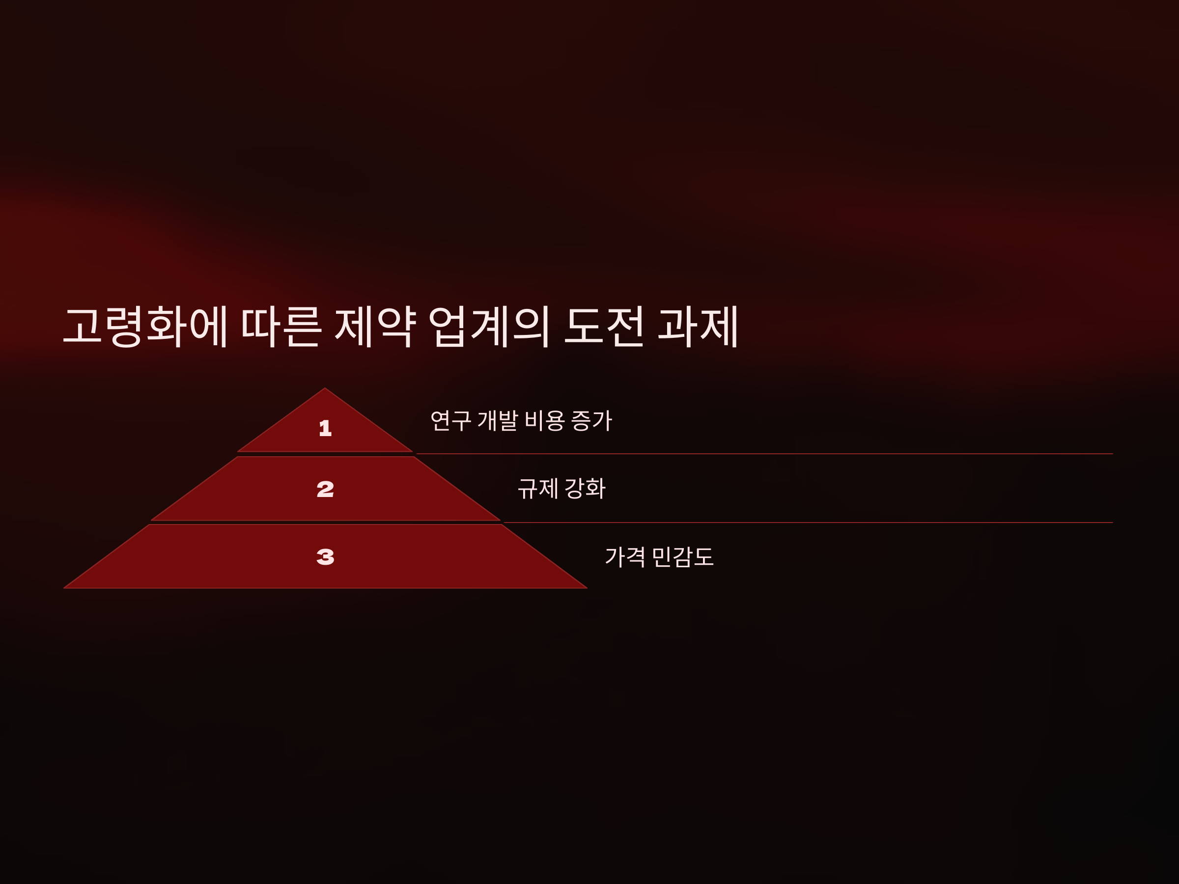 고령화로 인해 제약 업계는 새로운 기회를 얻는 동시에 다양한 도전에 직면하고 있습니다. 대표적인 과제는 다음과 같습니다.