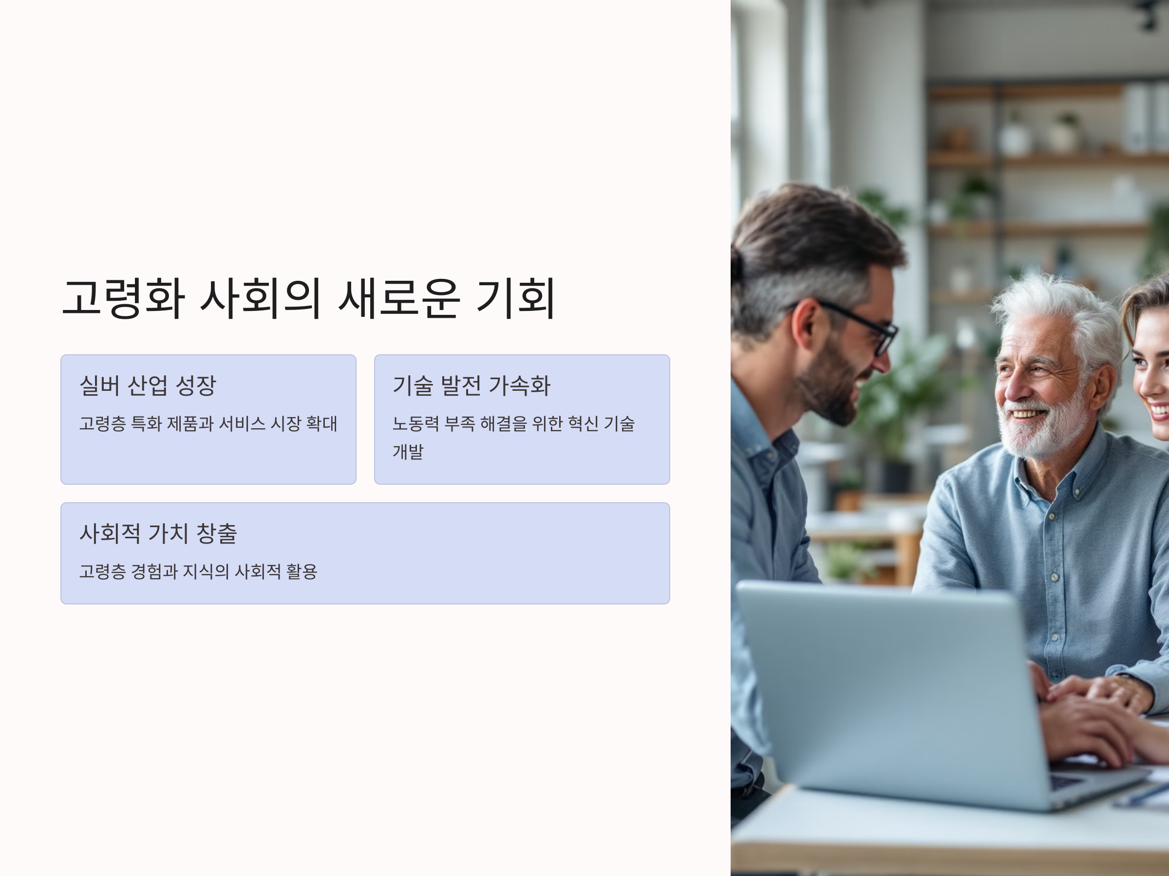고령화 사회가 경제에 미치는 영향은 그 어느 때보다 중요하며, 이를 대비하기 위한 전략적 접근이 필요합니다. 고령화는 노동력 부족, 생산성 감소, 소비 패턴의 변화 등 여러 경제적 과제를 동반하지만, 동시에 새로운 기회도 제공합니다. 기업과 정부는 고령화 사회에서 발생할 수 있는 다양한 문제를 해결하기 위해 혁신적인 정책과 기술을 도입해야 하며, 이를 통해 지속 가능한 경제 성장을 이룰 수 있습니다.
