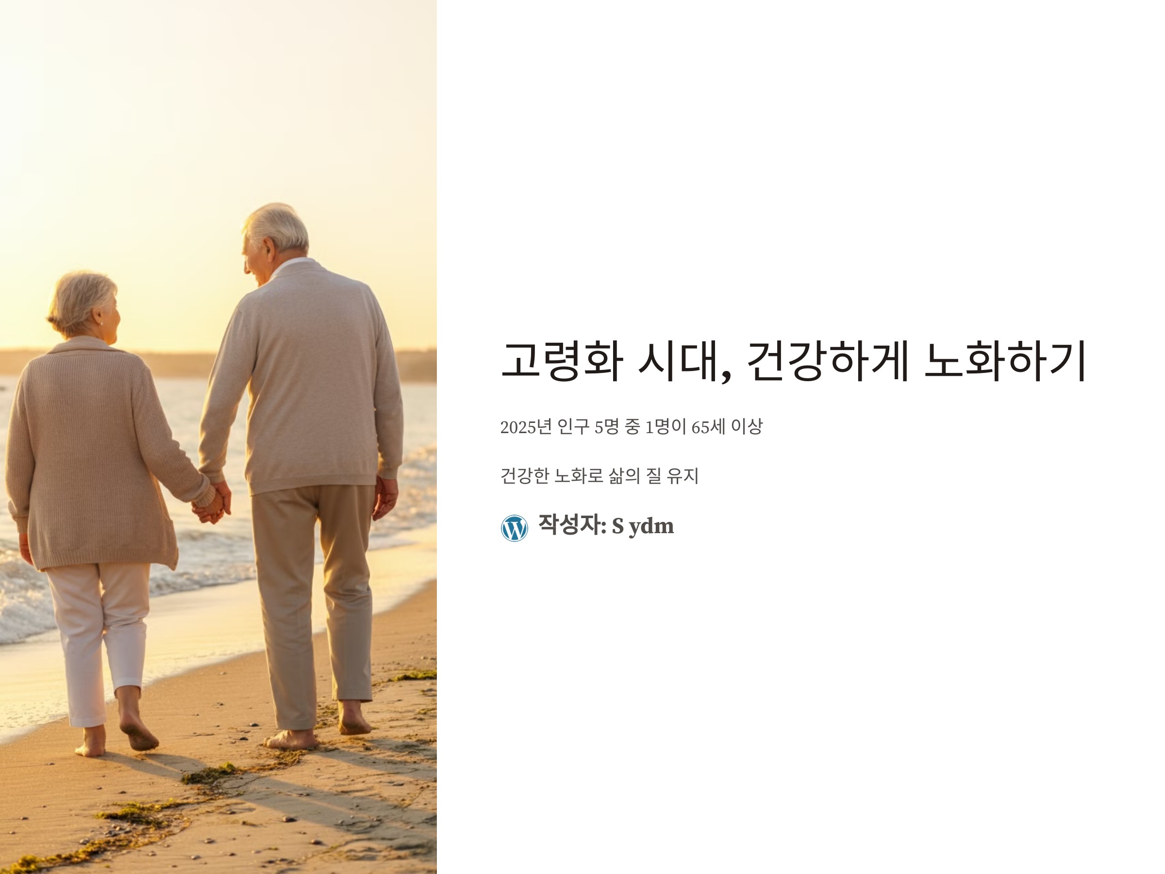 전 세계적으로 고령화가 가속화되고 있습니다. 한국은 특히 빠르게 고령사회로 진입하고 있으며, 2025년에는 인구 5명 중 1명이 65세 이상이 될 것으로 예상됩니다. 고령화는 개인과 사회에 다양한 도전 과제를 던지지만, 건강한 노화를 준비하면 삶의 질을 유지하며 더 오래 살 수 있습니다. 이번 글에서는 건강한 노화를 위한 실천 방법과 고령화의 사회적 의미를 살펴보겠습니다.