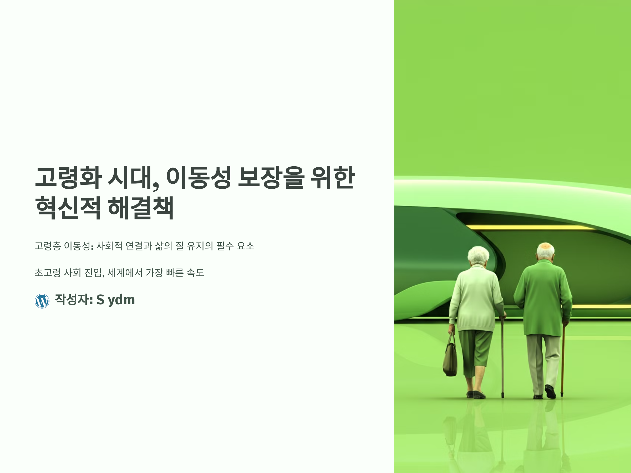 고령화는 전 세계적으로 심화되는 사회적 문제 중 하나로, 특히 한국은 초고령 사회로 진입하며 그 속도가 세계에서 가장 빠른 수준입니다. 이런 상황에서 고령층의 이동성을 보장하는 것은 단순한 편의 제공이 아닌, 사회적 연결과 삶의 질을 유지하는 필수 요소로 떠오르고 있습니다. 이번 글에서는 고령화와 이동성 보장 문제를 깊이 있게 탐구하며, 이를 해결하기 위한 혁신적 방안을 제시합니다.