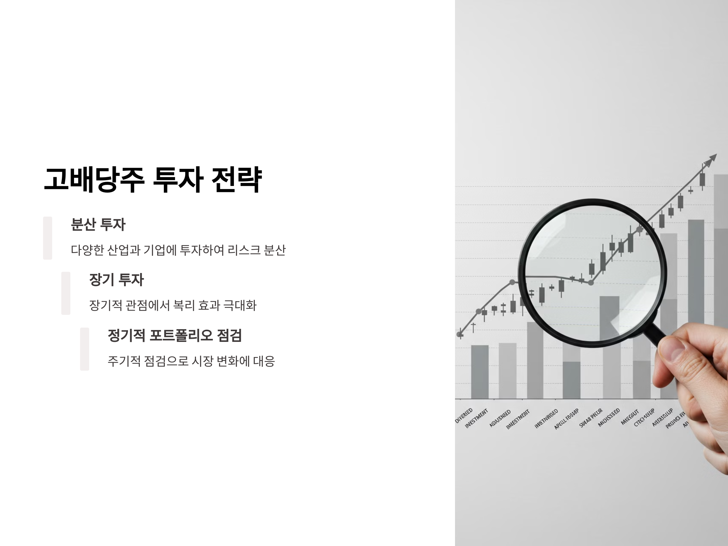 - 장기 투자: 고배당주는 장기적인 관점에서 투자할 때 복리 효과를 극대화할 수 있습니다.