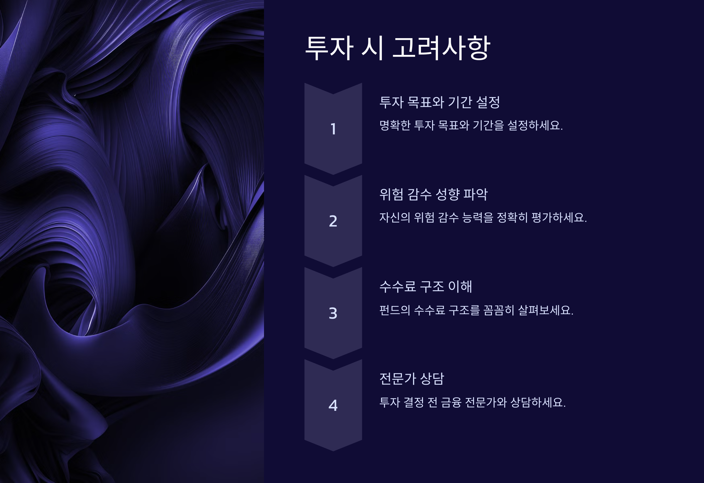 - 위험 감수 성향: 자신의 위험 감수 성향을 파악하고, 이에 맞는 펀드를 선택해야 합니다.