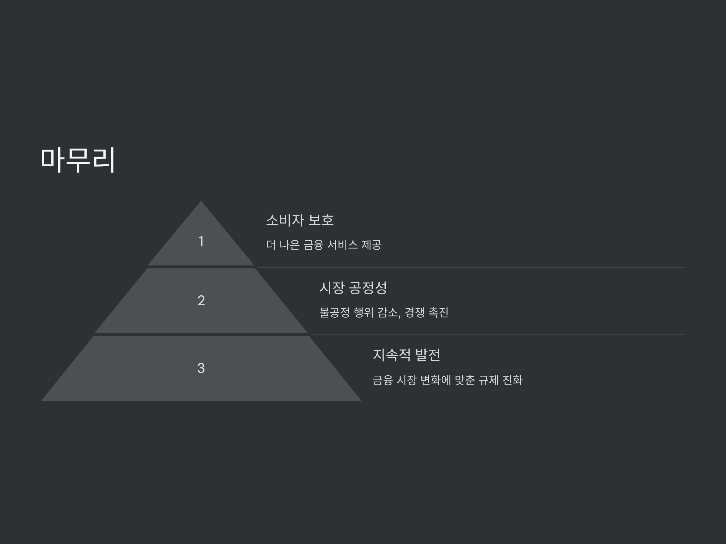 금융 산업의 규제는 계속해서 강화될 것으로 예상됩니다. 디지털 금융이 확대되면서 금융 상품과 서비스가 더욱 다양화되고 있기 때문에, 이에 대한 철저한 모니터링과 규제가 필요합니다. 특히, 금융기술(Fintech) 기업들의 성장은 금융 시장의 경쟁 환경을 변화시키고 있으며, 이에 대한 규제의 필요성이 더욱 커지고 있습니다.