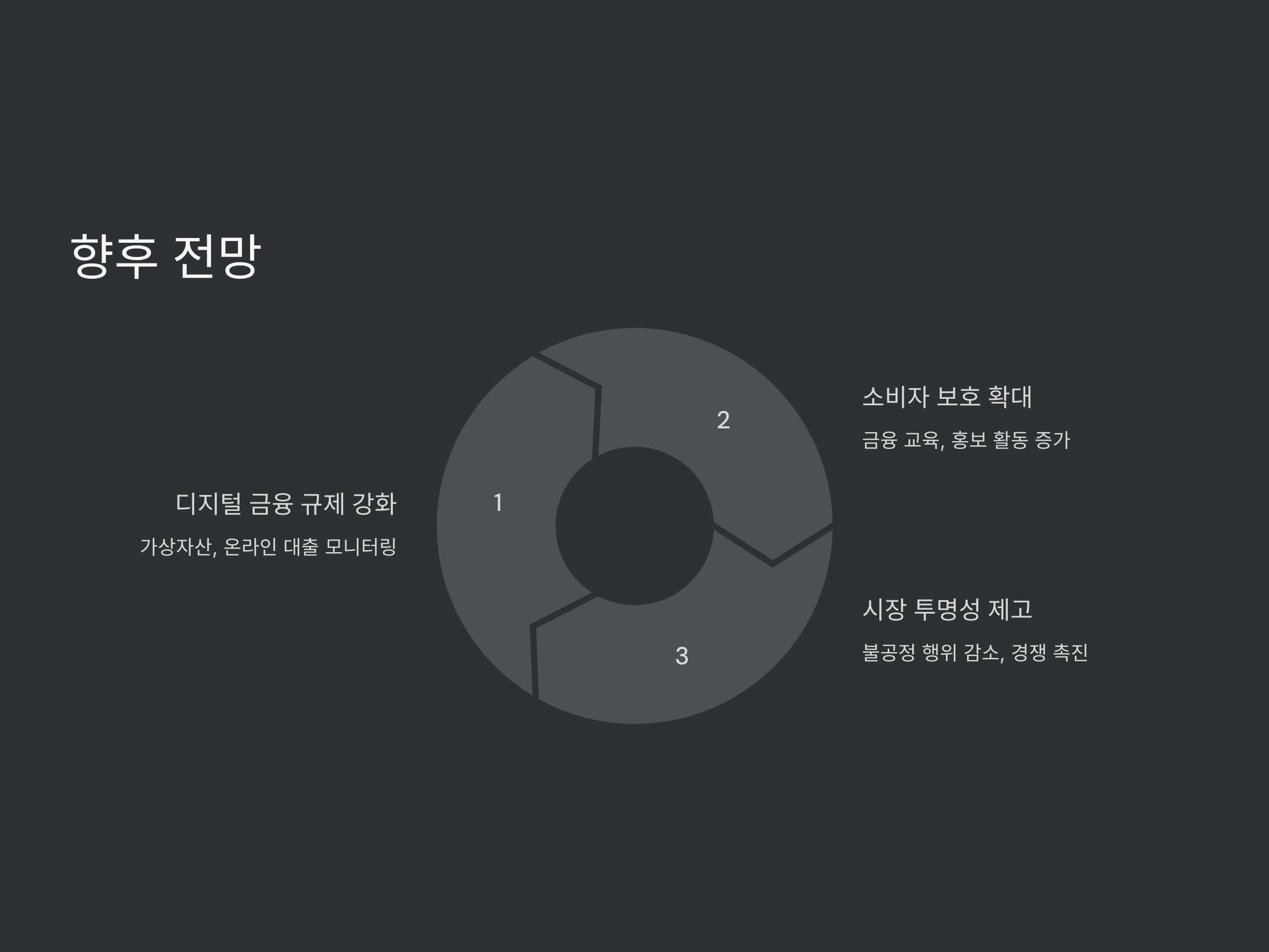 - 소비자 보호 강화: 금융 소비자 보호를 위한 다양한 법적 장치들이 마련될 것으로 보이며, 금융 상품에 대한 이해를 돕기 위한 공정위의 교육과 홍보 활동도 강화될 것입니다.
