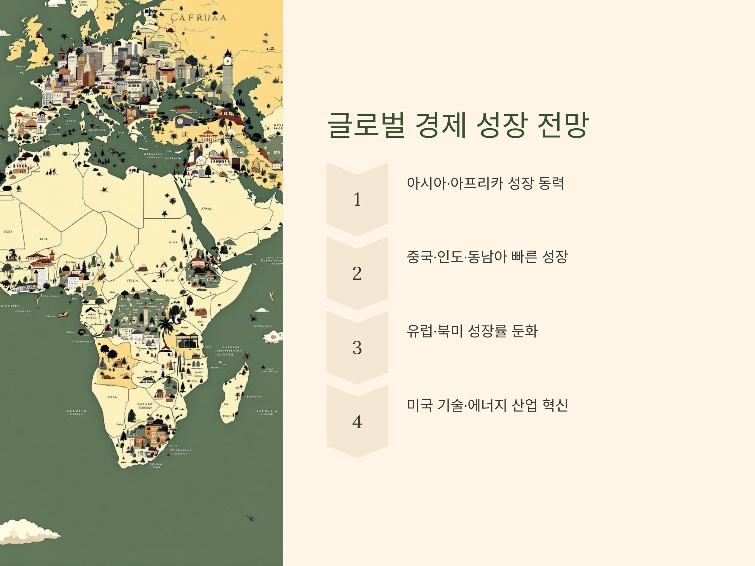 세계 경제는 2025년에도 지속적인 성장세를 보일 것으로 예측됩니다. 특히, 아시아와 아프리카 시장이 주요 성장 동력으로 작용할 것입니다. 중국, 인도, 동남아시아 지역은 지속적으로 빠르게 성장하고 있으며, 이는 국제 금융 시장에도 큰 영향을 미칠 것입니다. 이러한 지역에서의 경제 성장은 원자재 가격 상승과 함께 세계 경제에 중요한 영향을 끼칠 것입니다.