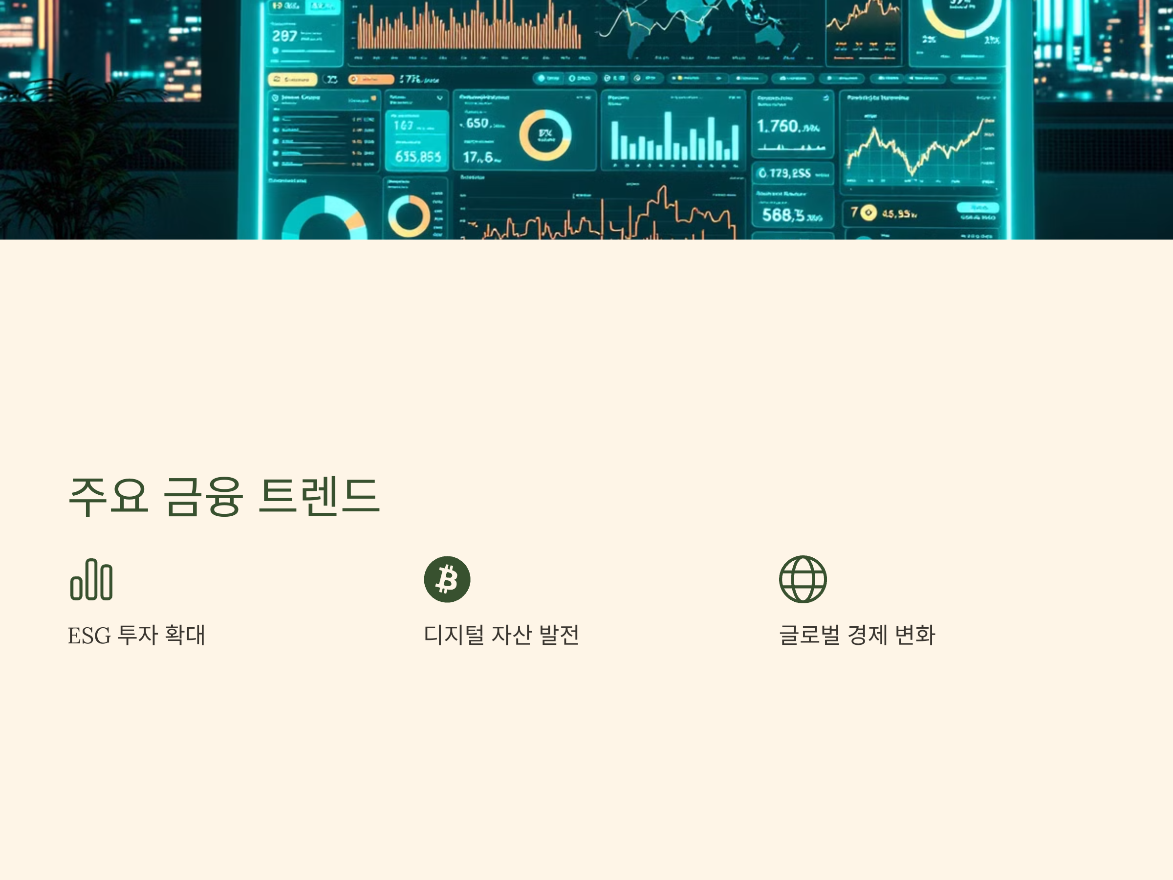 환경, 사회, 지배구조(ESG) 투자는 2025년에도 주요한 트렌드로 자리 잡을 것입니다. 지속 가능한 투자에 대한 관심이 증가함에 따라, 금융 시장에서는 ESG 관련 자산이 더욱 중요한 자리를 차지하게 될 것입니다. 기업들이 ESG 기준을 충족시키기 위한 노력을 기울이고 있으며, 이는 투자자들에게 장기적인 안정성과 지속 가능한 수익을 제공할 수 있습니다.