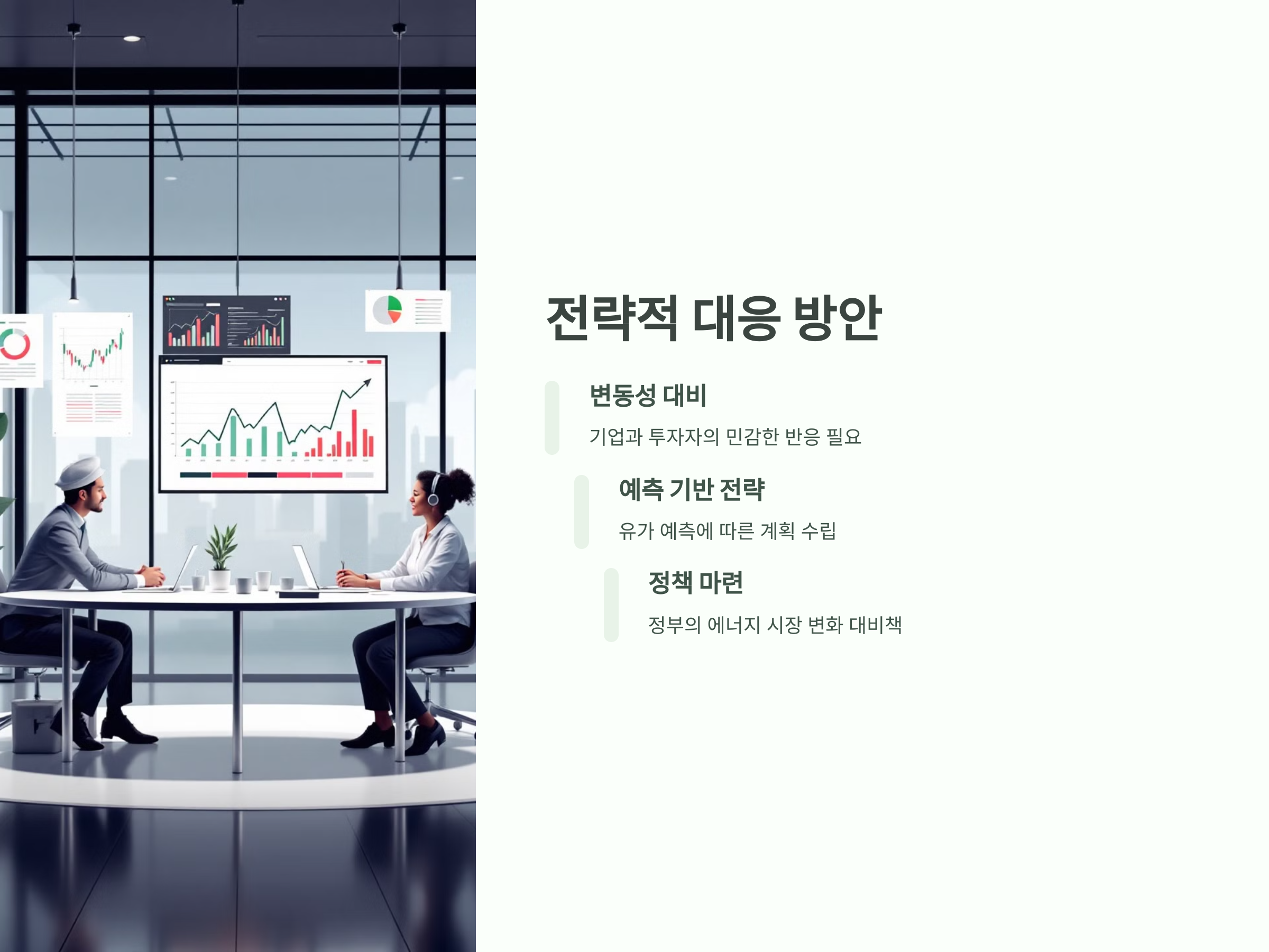 기업과 투자자들은 국제 유가의 변동성에 민감하게 반응해야 하며, 유가 예측을 기반으로 한 전략을 세울 필요가 있습니다. 또한, 정부와 정책 결정자들은 에너지 시장의 변화를 미리 예측하고, 신재생 에너지와 석유 수요 변화에 대비한 정책을 마련해야 할 것입니다. 2025년의 국제 유가는 그 어떤 해보다도 예측하기 어려운 상황이지만, 이를 잘 대비한다면 안정적인 에너지 시장을 구축할 수 있을 것입니다.