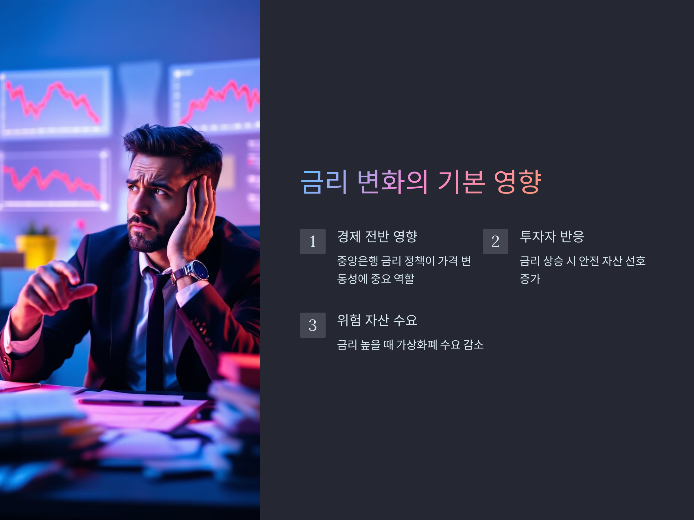 금리가 가상화폐 가격에 미치는 영향을 이해하려면, 우선 금리와 다른 자산들 간의 관계를 알아볼 필요가 있습니다. 금리가 상승하면 채권과 같은 안전 자산의 수익률이 높아지며, 그에 따라 투자자들은 위험 자산을 회피하는 경향을 보입니다. 이로 인해 가상화폐와 같은 자산의 수요가 감소하고, 그 결과 가격이 하락할 수 있습니다.