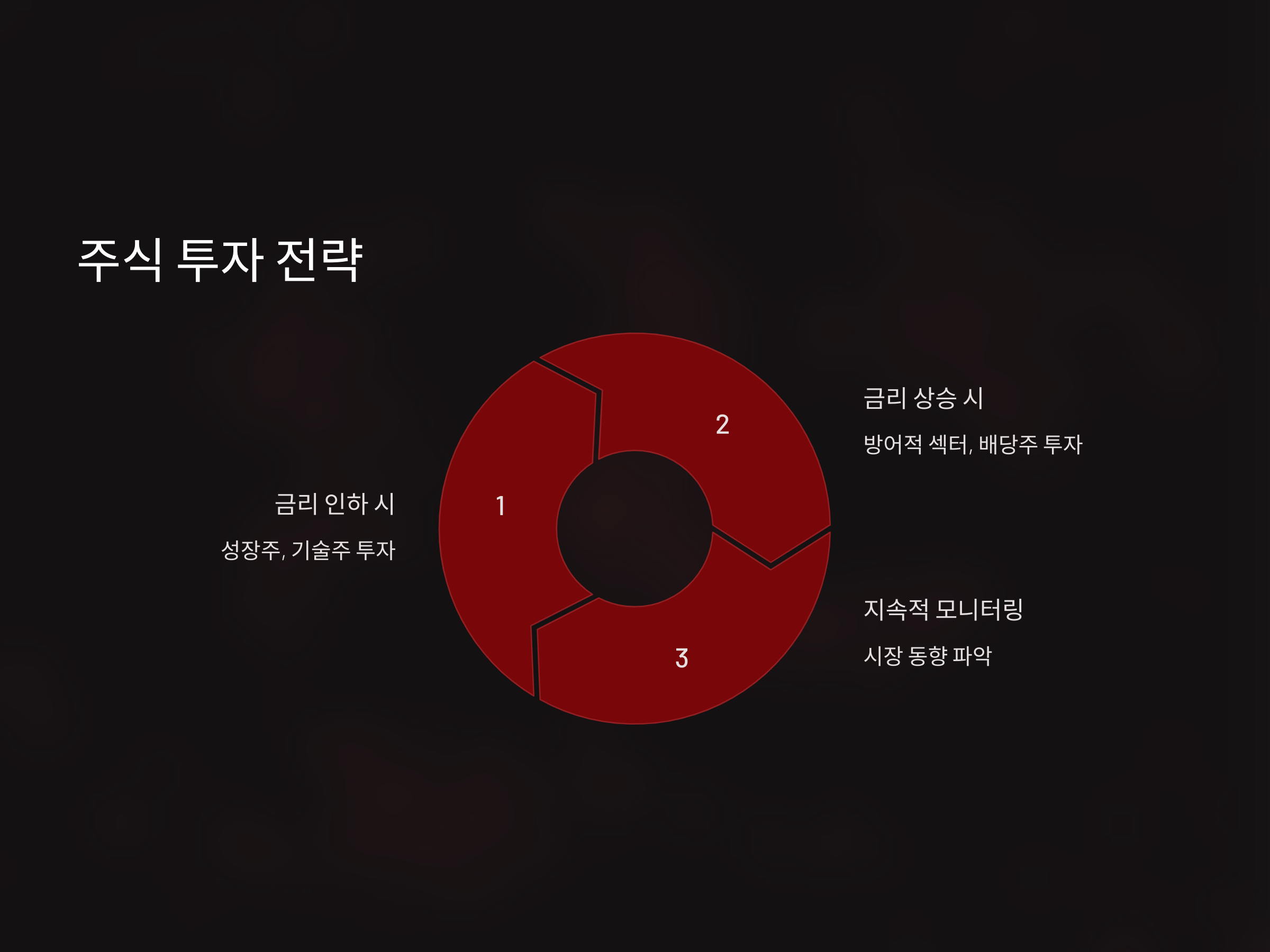 - 금리 상승 시기: 방어적인 섹터나 배당주에 투자하여 안정적인 수익을 추구하는 전략이 유용합니다.