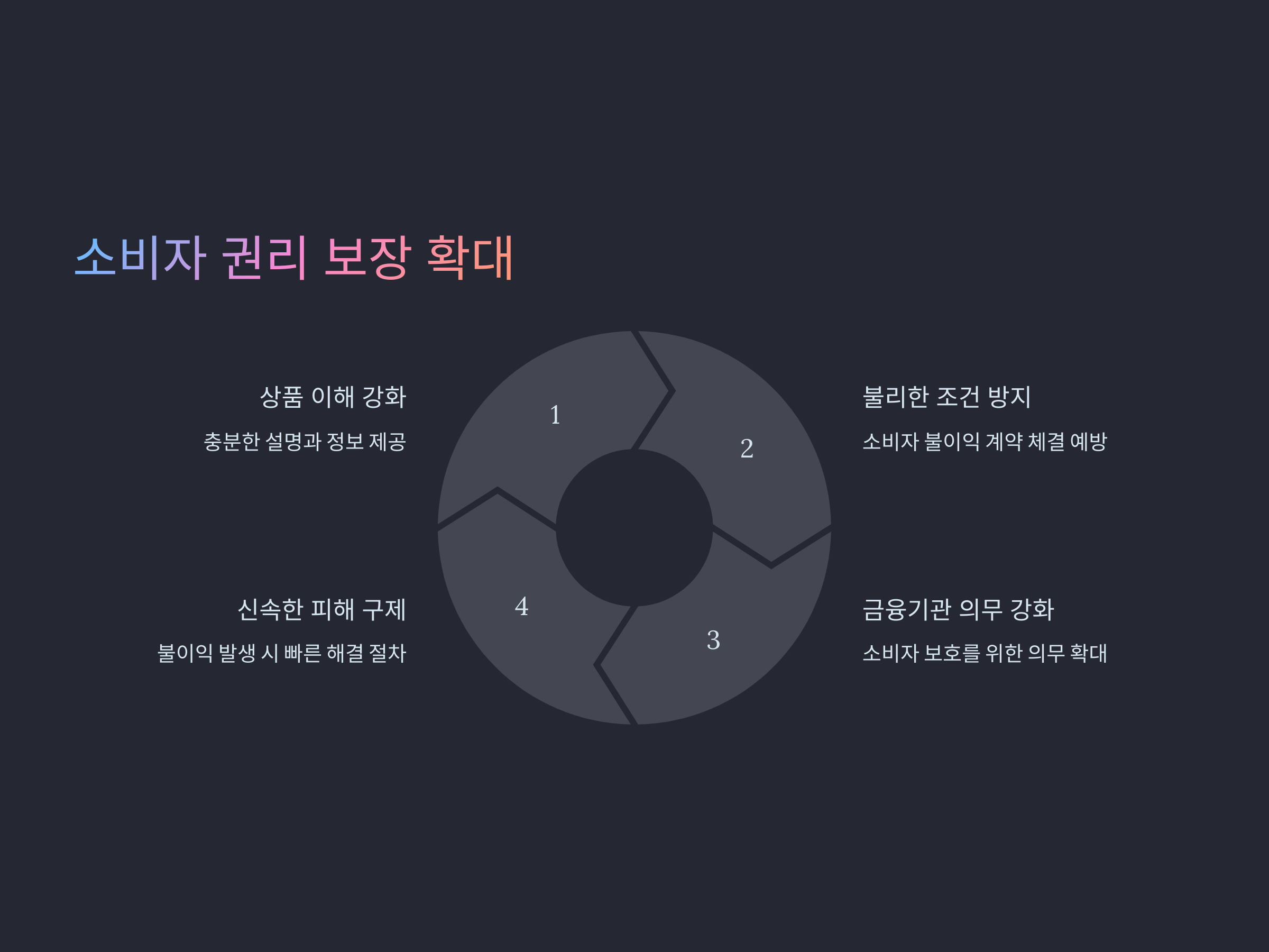 이 법은 금융소비자의 권리를 강화하고, 불공정한 금융 거래를 예방하기 위한 여러 가지 장치를 마련했습니다. 예를 들어, 금융 상품을 가입할 때 소비자가 충분히 이해할 수 있도록 설명하고, 상품에 대한 중요한 정보를 제대로 제공해야 합니다. 또한, 상품을 취급하는 과정에서 소비자가 불리한 조건을 알지 못하고 계약을 체결하지 않도록 금융기관의 의무가 강화되었습니다. 그 외에도, 금융 사고나 불이익이 발생했을 때 소비자가 신속하게 피해를 구제받을 수 있도록 하는 제도도 마련되었습니다.