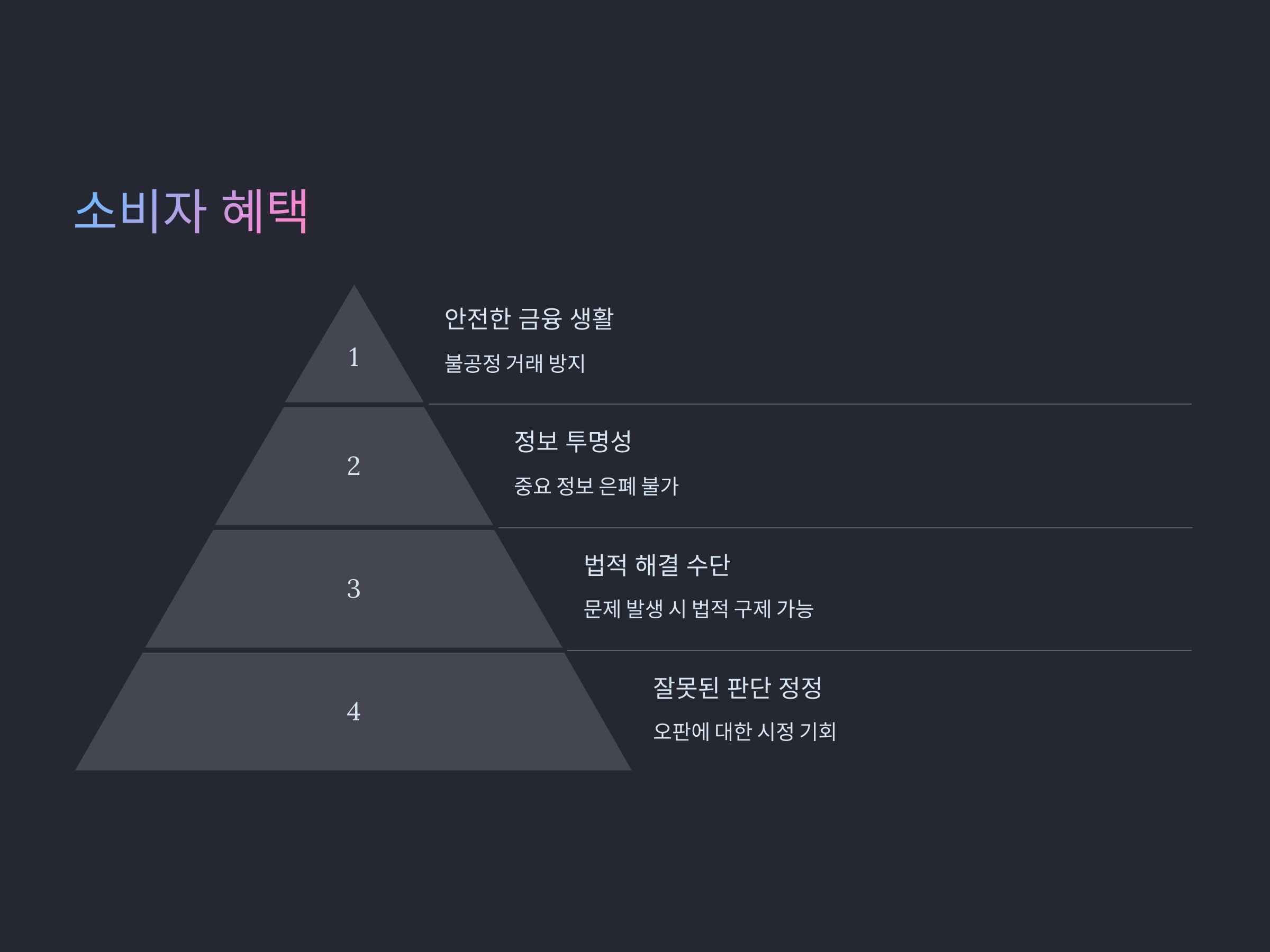 금융소비자 보호법의 가장 큰 혜택은 소비자가 금융 상품을 이용할 때 불공정한 거래로부터 보호받을 수 있다는 점입니다. 예를 들어, 금융상품을 구매하면서 금융기관이 의도적으로 중요한 정보를 숨기거나, 잘못된 정보를 제공해 계약을 체결한 경우, 소비자는 이를 법적으로 해결할 수 있는 길이 생겼습니다. 또한, 소비자가 금융 상품에 대해 잘못된 판단을 내린 경우, 이를 바로잡을 수 있는 장치가 마련되어 있습니다.