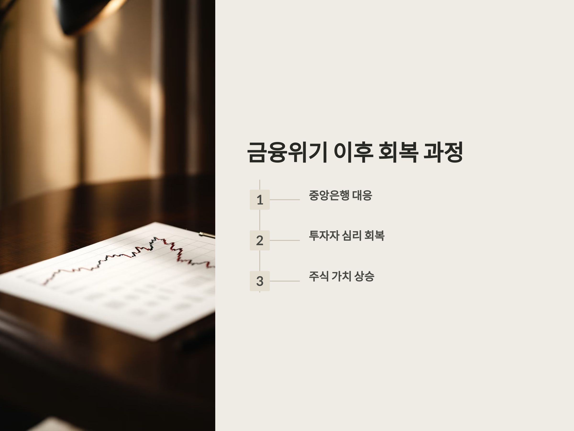 금융위기 이후 주식 시장은 일정 기간 동안 회복하는 과정을 거칩니다. 예를 들어, 2008년 금융위기 이후, 시장은 점진적으로 회복세를 보였으며, 중앙은행들은 금리를 대폭 인하하고, 대규모 자산 구매 프로그램을 시행하여 경제를 자극했습니다. 이러한 대응은 주식 시장의 회복을 촉진시키고, 다시 투자자들이 시장에 참여할 수 있는 환경을 만들었습니다.