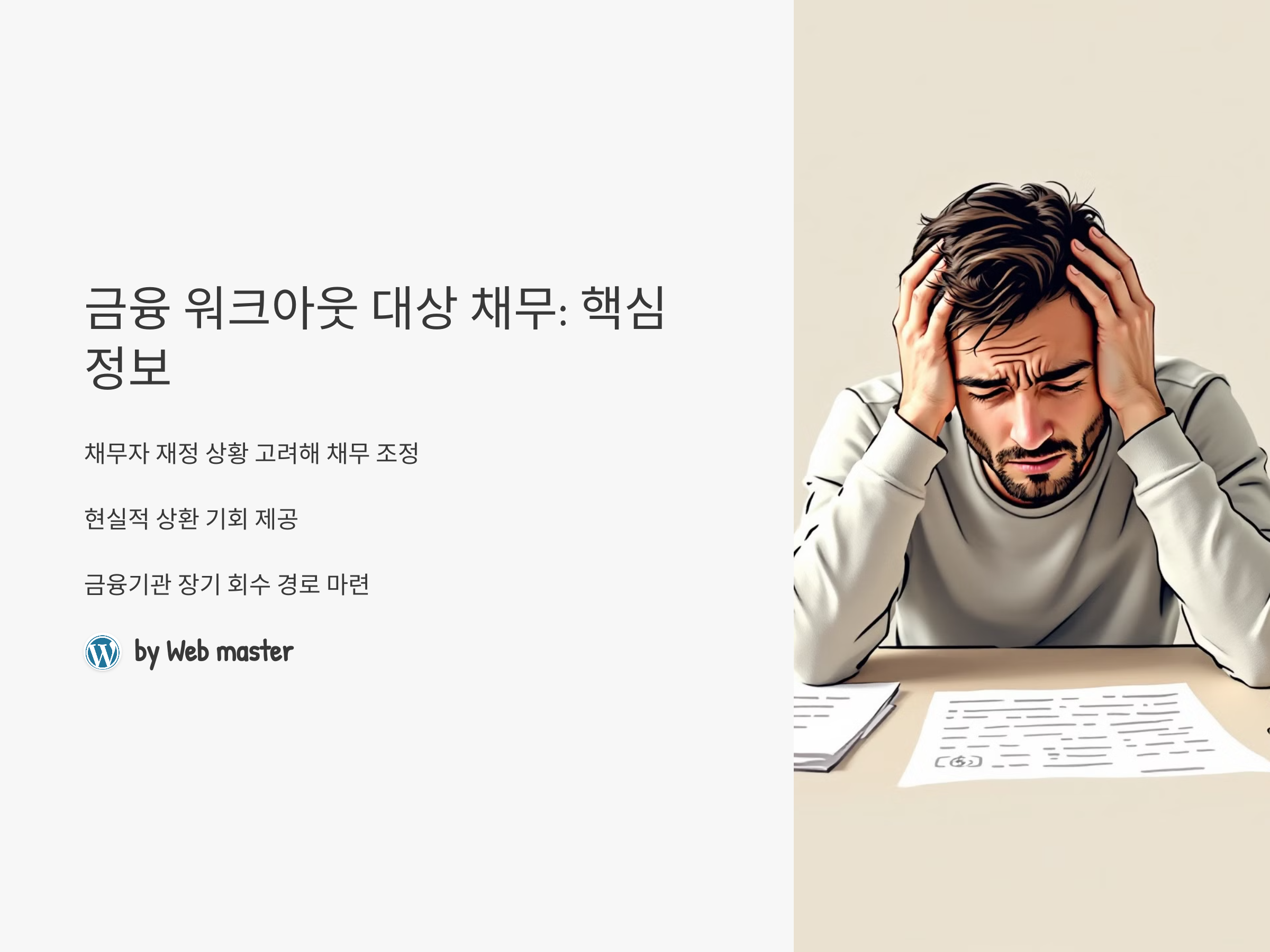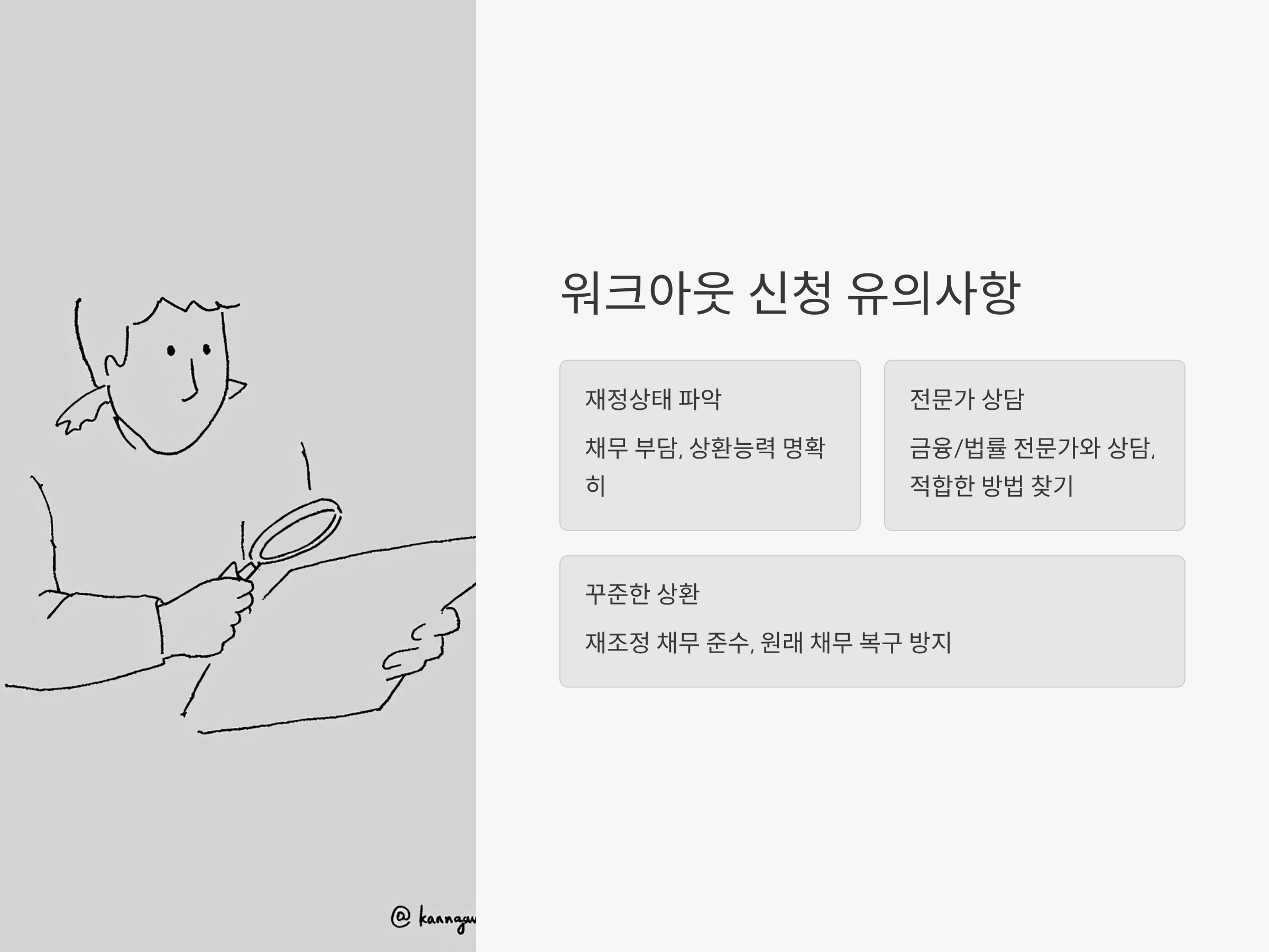 - 제한된 대상: 모든 채무가 워크아웃 대상이 되는 것은 아니며, 일부는 제외될 수 있습니다.