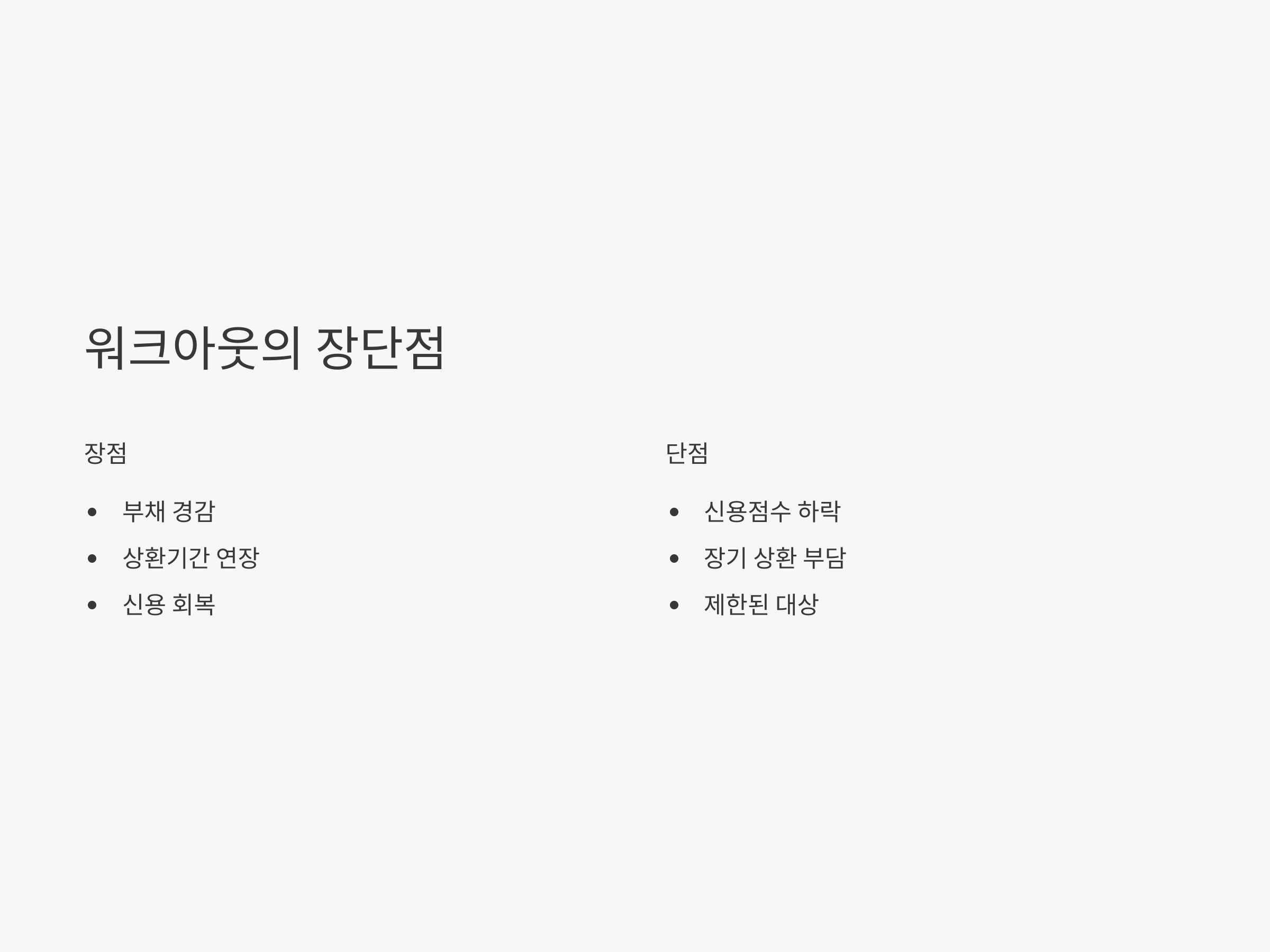금융 워크아웃의 장점과 단점