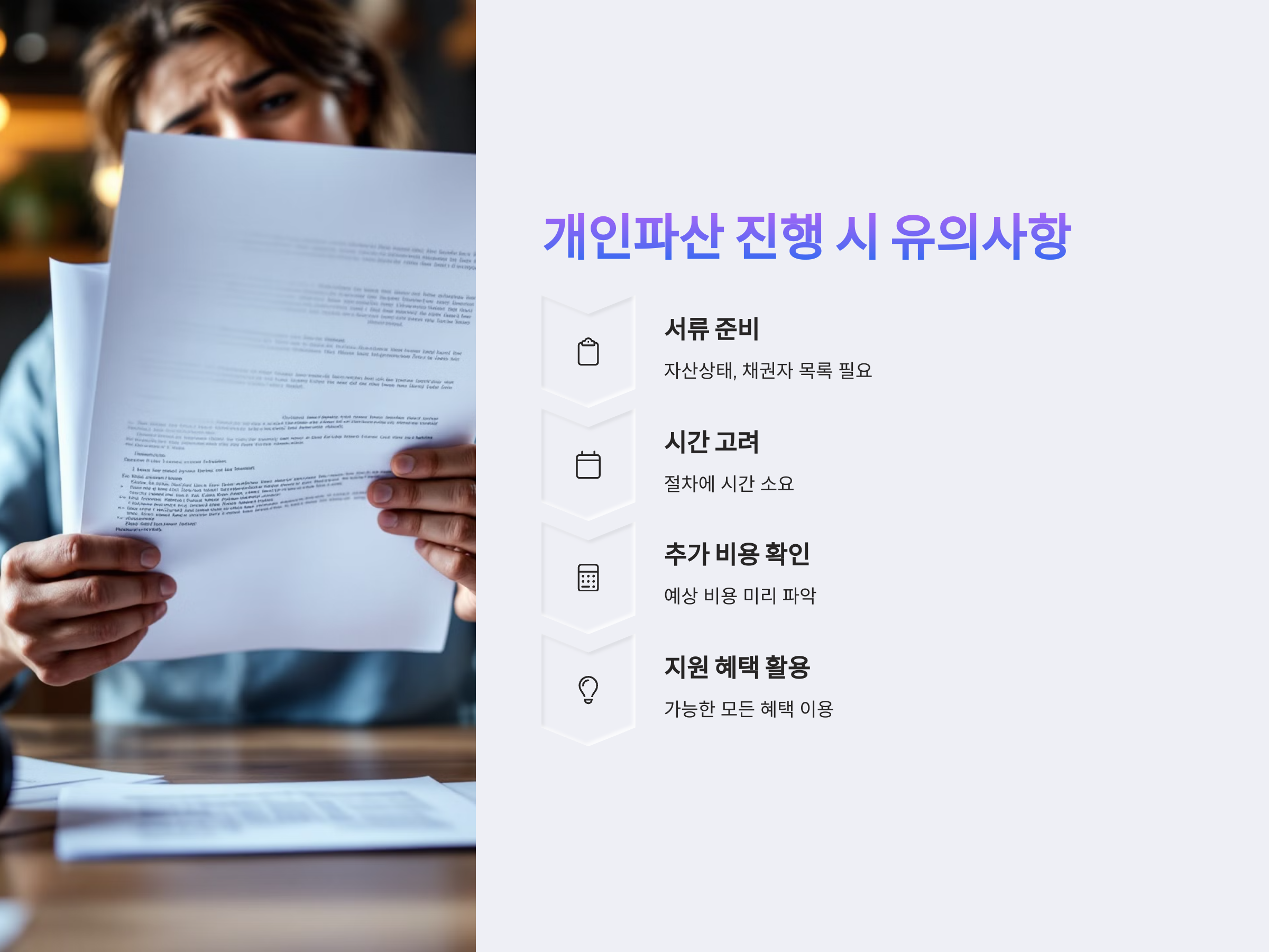 또한, 개인파산 절차는 시간이 걸리기 때문에, 법무사와의 협의 후 예상되는 기간과 추가적인 비용이 무엇인지도 정확히 알아두어야 합니다. 기초생활수급자는 경제적 부담을 최소화하는 방향으로 모든 절차를 준비하는 것이 좋습니다.