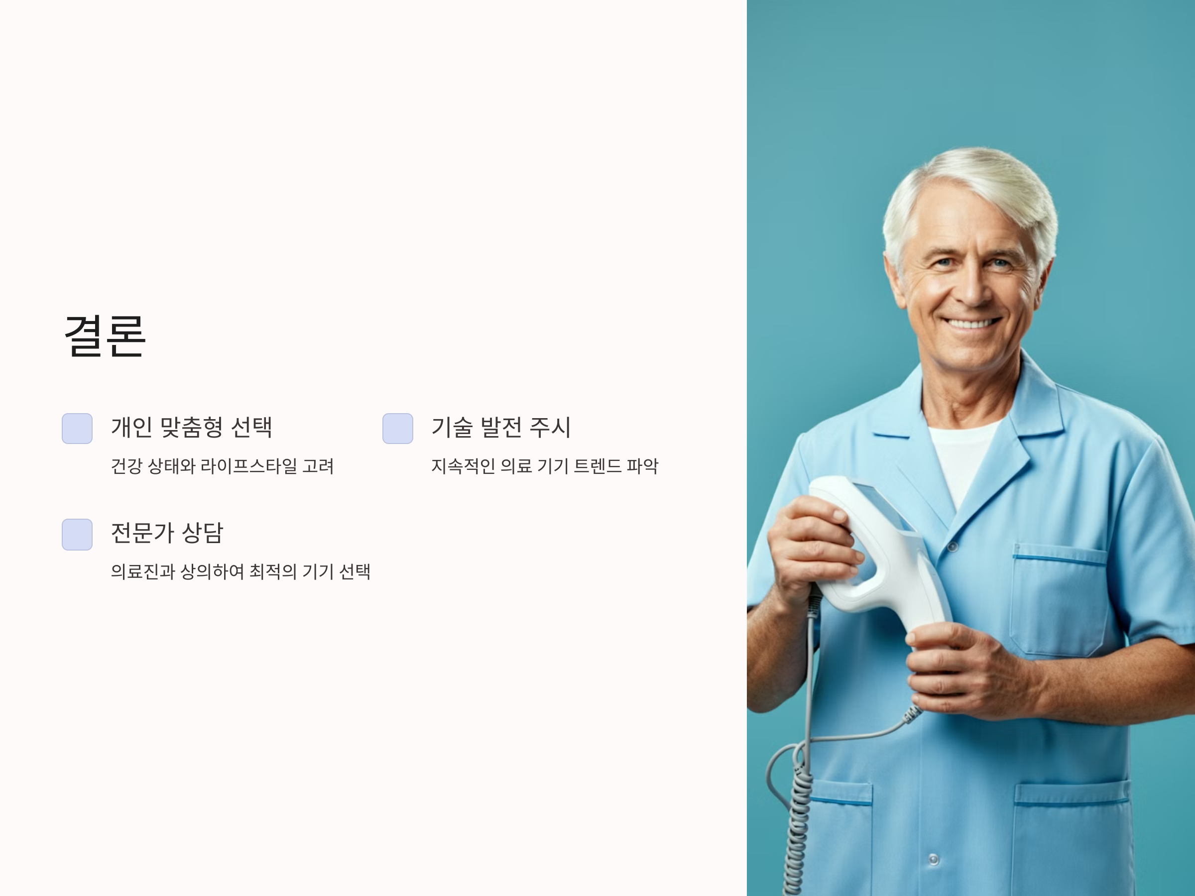 의료 기기를 선택할 때는 다음의 주요 요소를 반드시 검토해야 합니다: