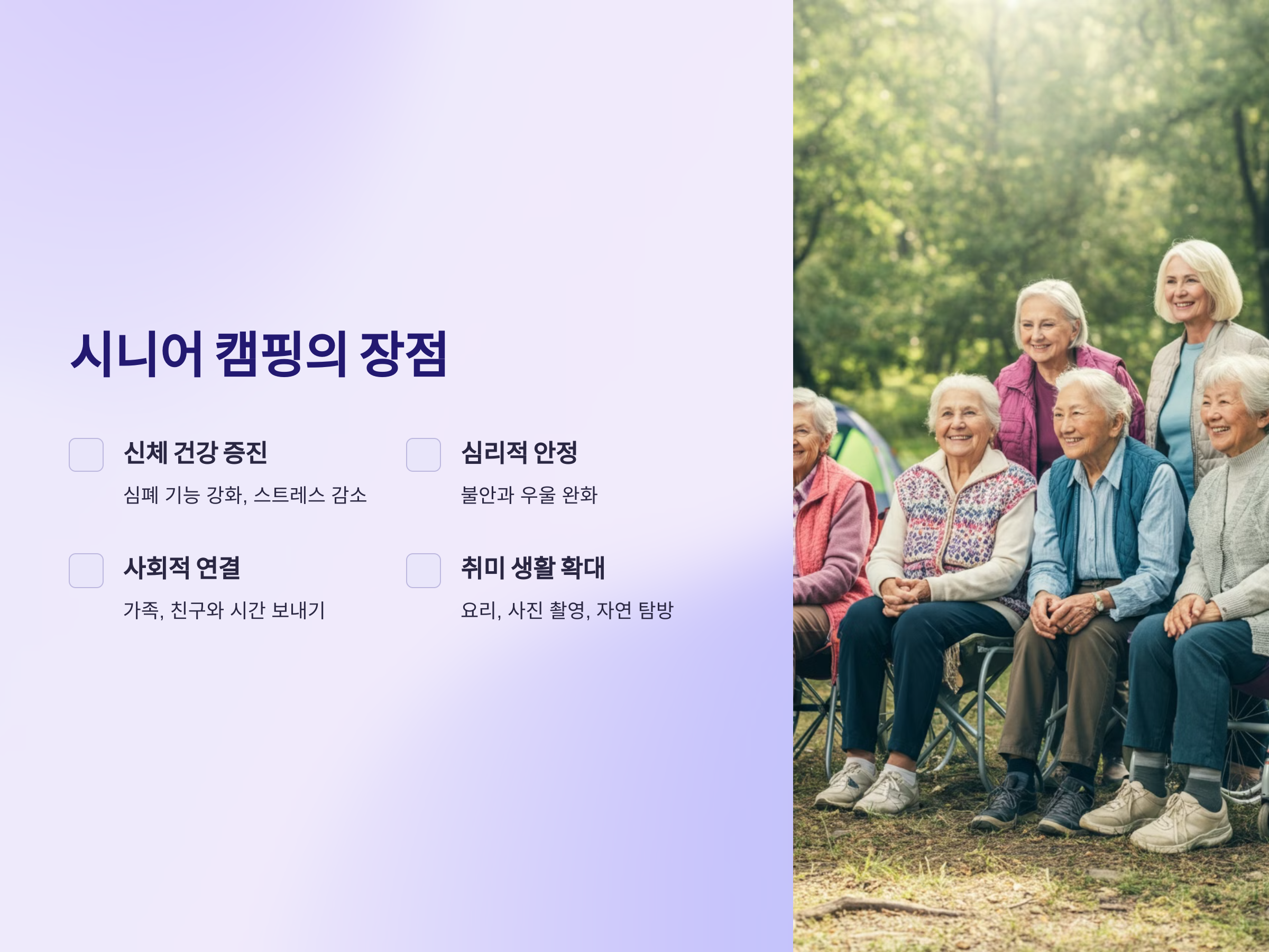 시니어가 즐길 수 있는 특별한 캠핑 활동
