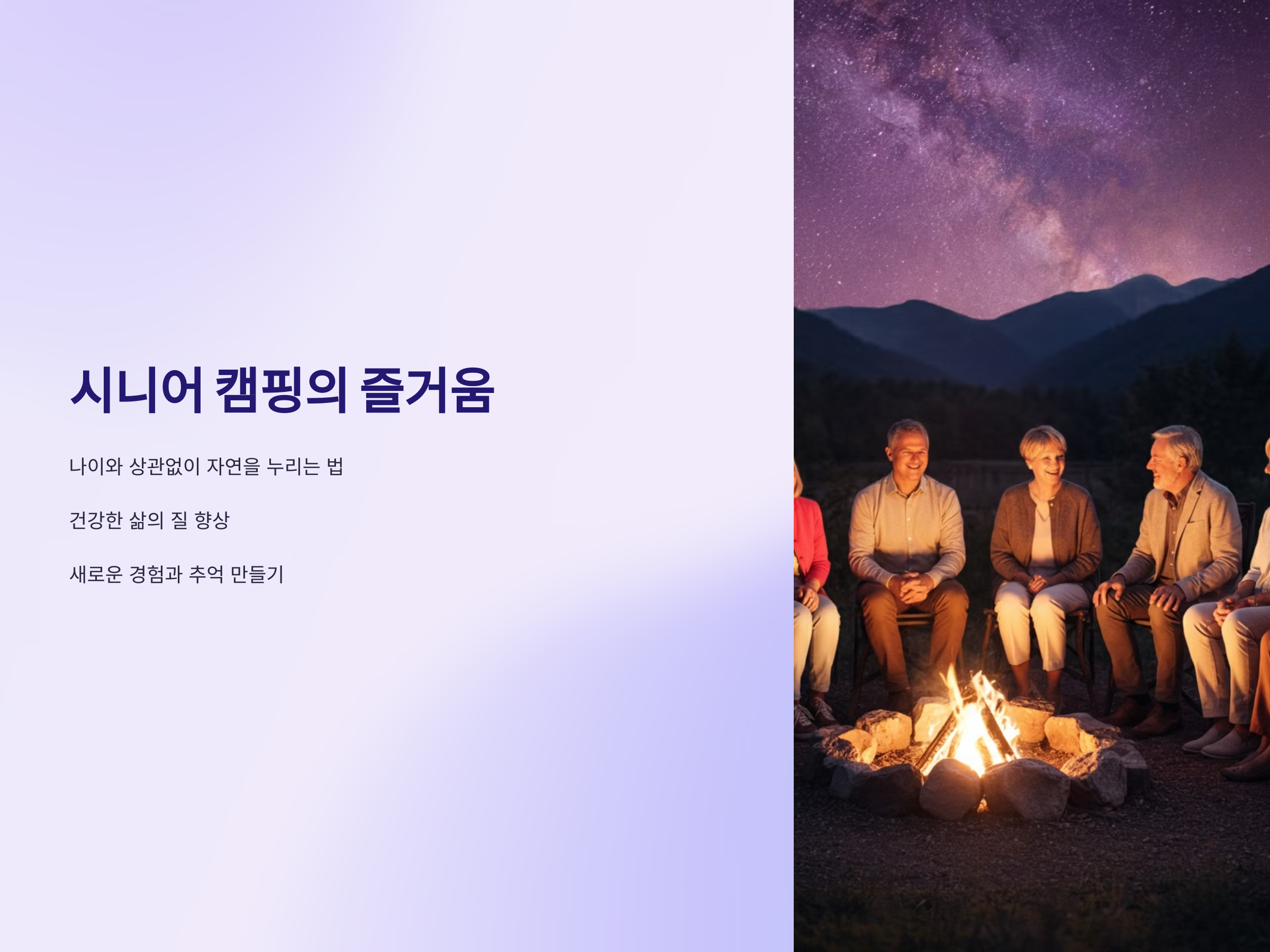 캠핑이 제공하는 이런 다양한 장점은 시니어들의 삶의 질을 크게 높여줍니다.