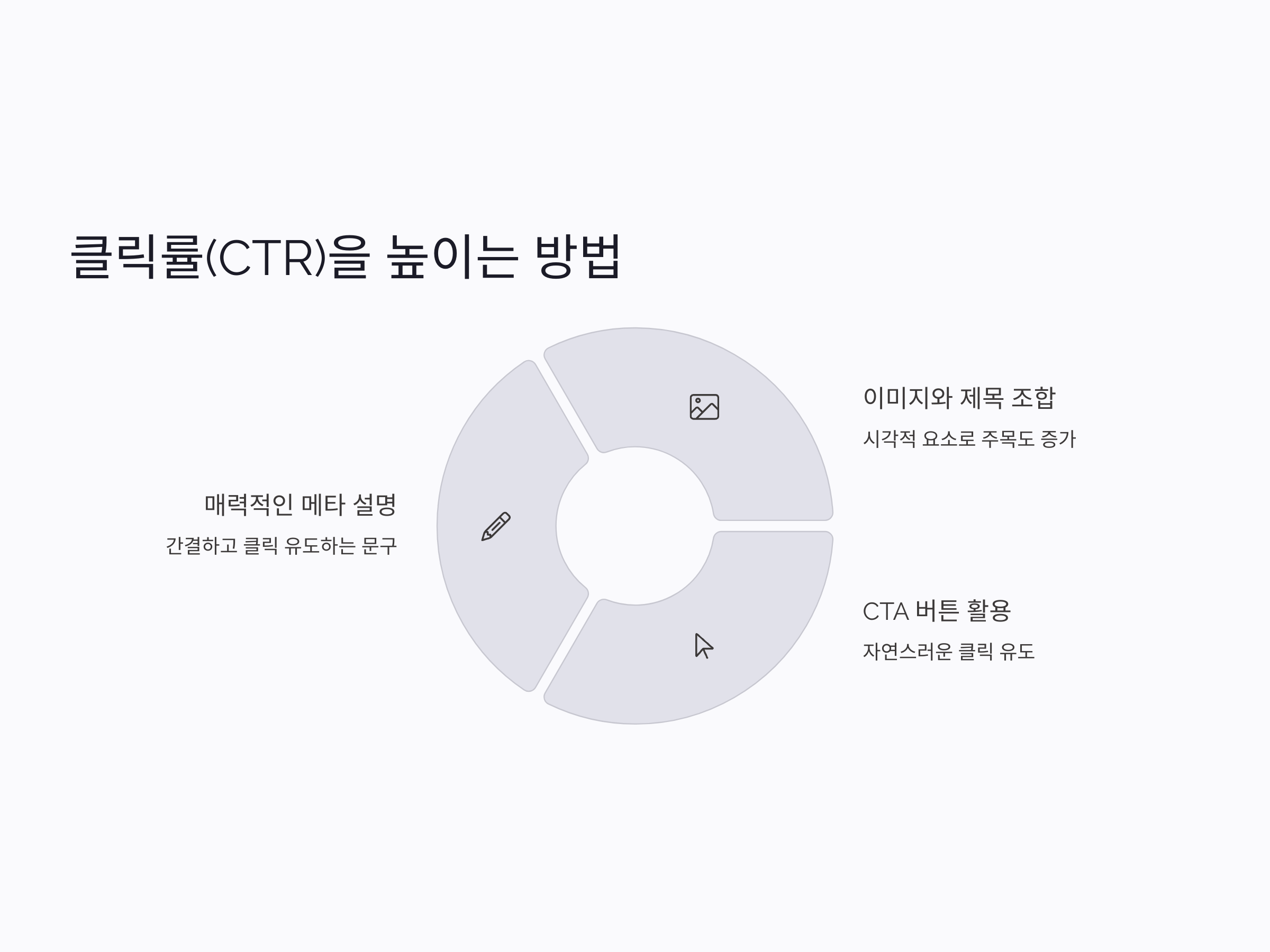- 매력적인 메타 설명 작성: 메타 설명은 검색 결과에서 제목 아래에 표시되며, 클릭 유도에 중요한 역할을 합니다. 메타 설명은 간결하고, 독자가 클릭하고 싶게 만드는 문구로 작성하세요.