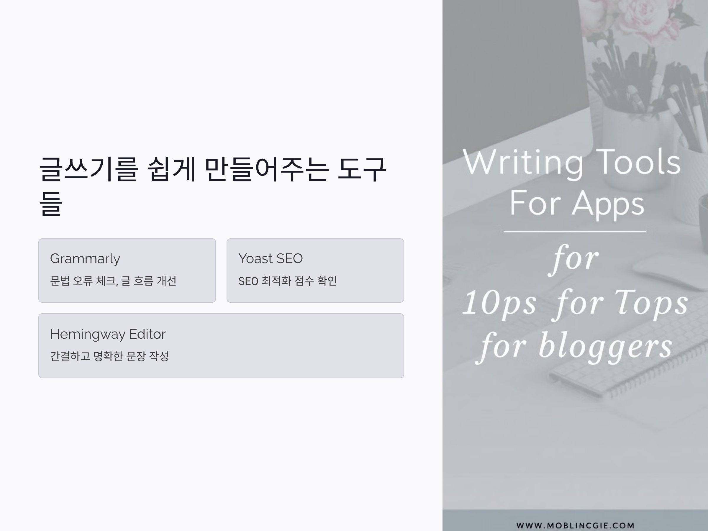 효과적인 블로그 글쓰기를 위해서는 글을 더 쉽게 작성할 수 있도록 돕는 도구들을 활용하는 것이 좋습니다. 다양한 글쓰기 도구들이 존재하는데, 이를 활용하면 시간 절약은 물론, 품질 높은 콘텐츠를 작성하는 데 도움이 됩니다. 글쓰기 도구를 이용하면 SEO 최적화, 문법 검사, 콘텐츠 아이디어 제공 등의 다양한 기능을 활용할 수 있습니다.