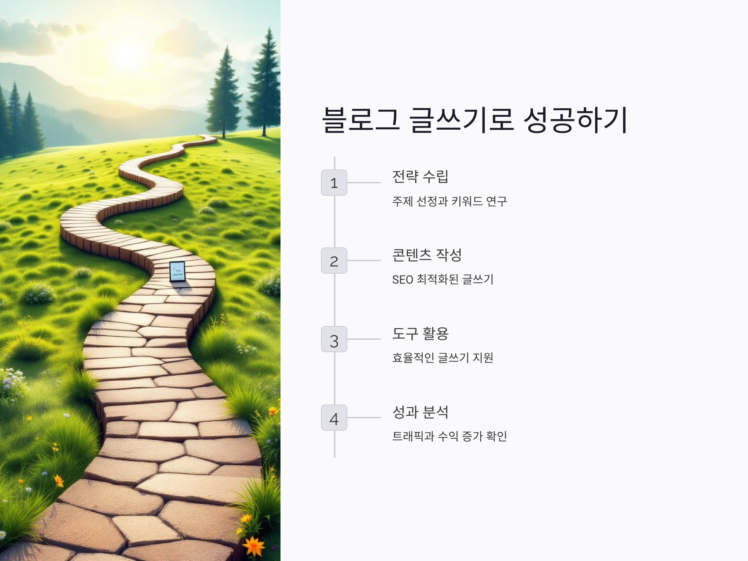 블로그 글쓰기를 잘하기 위해서는 SEO 최적화, 독자의 관심을 끌 수 있는 제목 작성, 그리고 체계적인 글쓰기 스타일이 중요합니다. 이를 위해 다양한 도구와 전략을 활용하면 글쓰기가 훨씬 효율적이고 효과적으로 변할 수 있습니다. 이제 여러분도 위의 전략들을 실천에 옮기며, 더 나은 블로그 글을 작성해보세요. 그리고 블로그를 통해 더 많은 트래픽과 수익을 얻을 수 있는 방법을 찾아가세요!