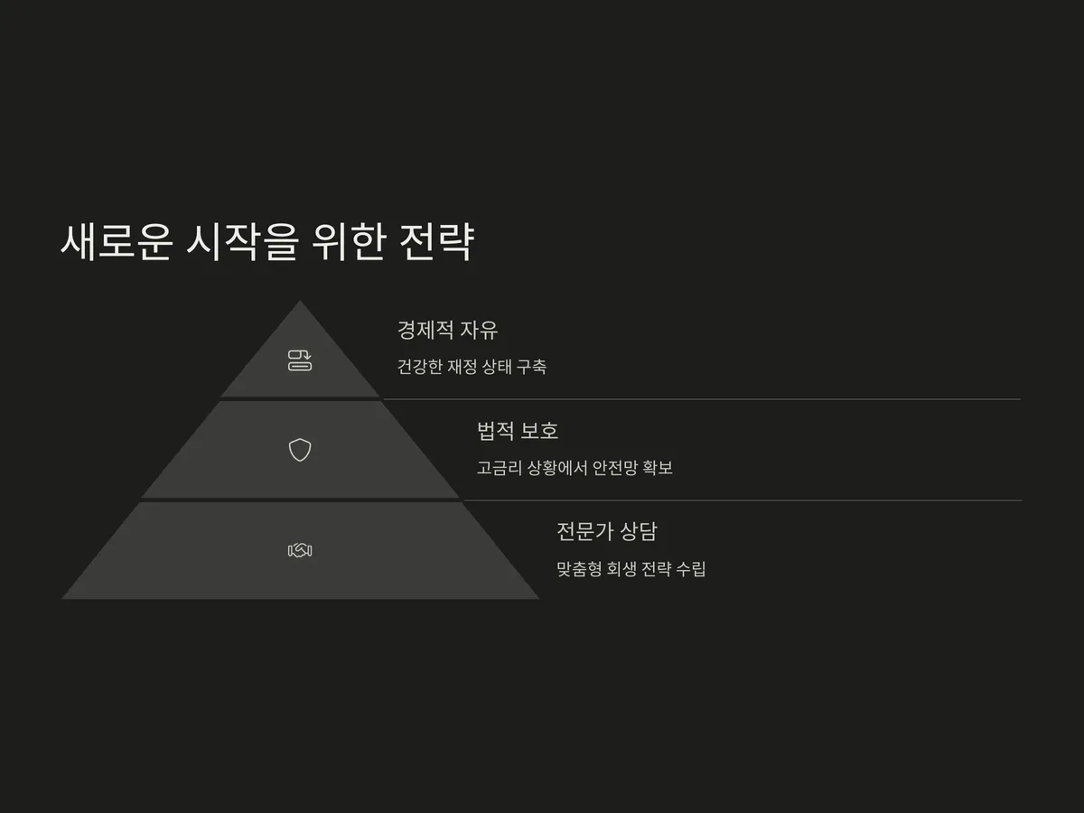 가장 중요한 것은 혼자 고민만 하지 말고, 법률 전문가의 상담을 받아 본인의 상황에 맞는 최적의 회생 전략을 수립하는 것입니다. 정보의 정확성과 대응의 속도가 성공 여부를 좌우하는 만큼, 지금 바로 실질적인 준비에 들어가보는 것이 좋습니