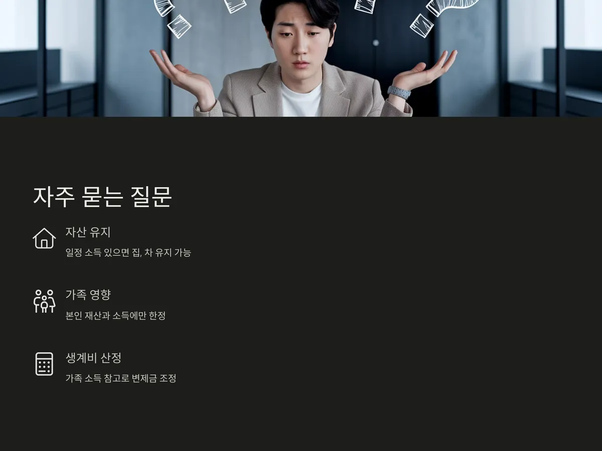 또한 ‘가족이나 배우자의 재산도 영향을 받는가’라는 질문도 많습니다. 원칙적으로 개인회생은 신청자 본인의 재산과 소득에 한정되며, 배우자의 소득은 참고자료일 뿐 직접적인 심사 대상은 아닙니다. 단, 소득이 합산되어 생계비 산정에 영향을 줄 수 있으므로 이에 따른 변제금 조정은 있을 수 있습니다.