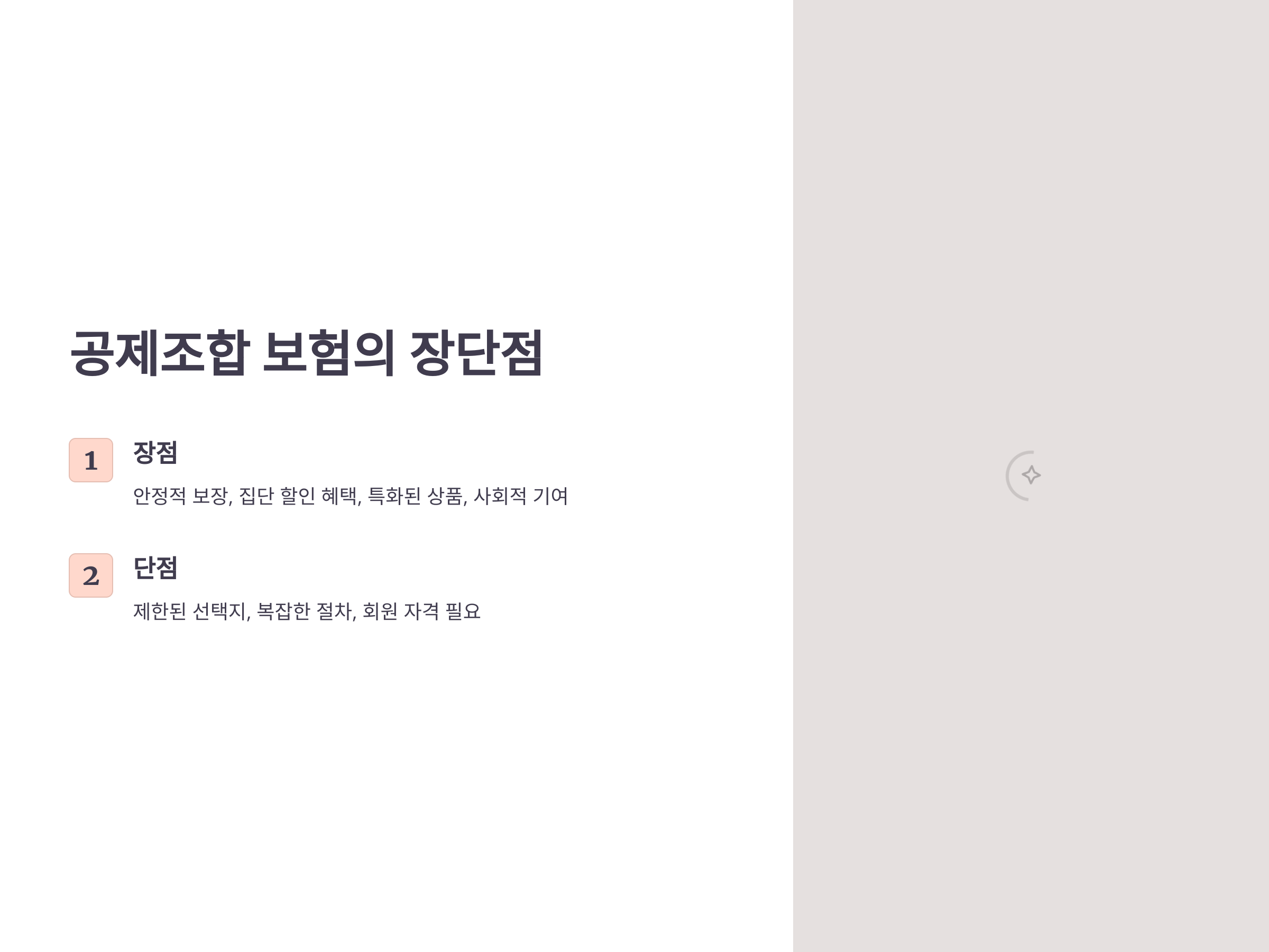 - 상호부조 시스템: 가입자가 서로 도와가며 보험료를 분담하므로 안정적인 보장이 가능합니다.
