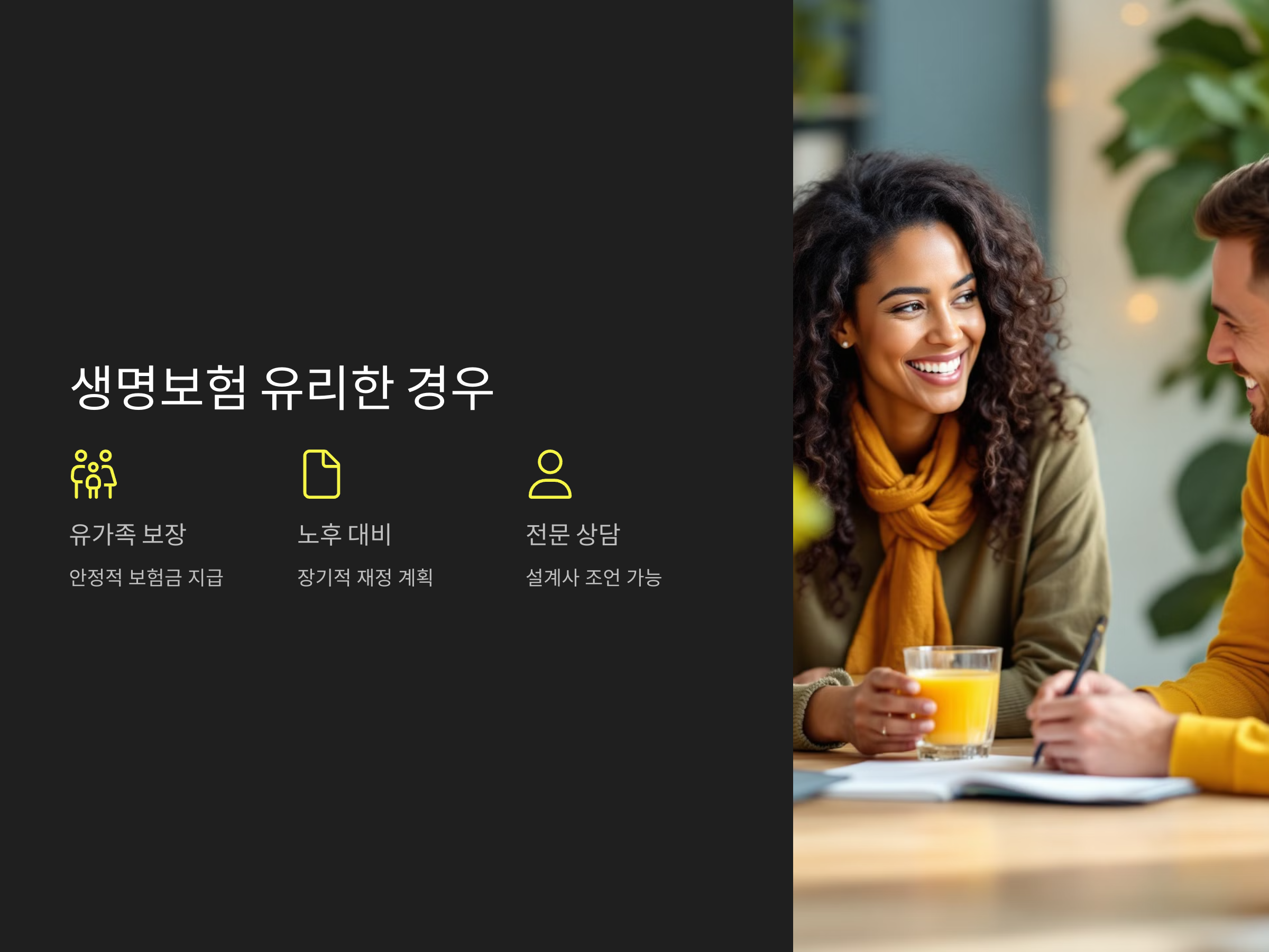 - 유가족을 위한 보장을 원할 때: 사망 시 가족에게 안정적인 보험금 지급