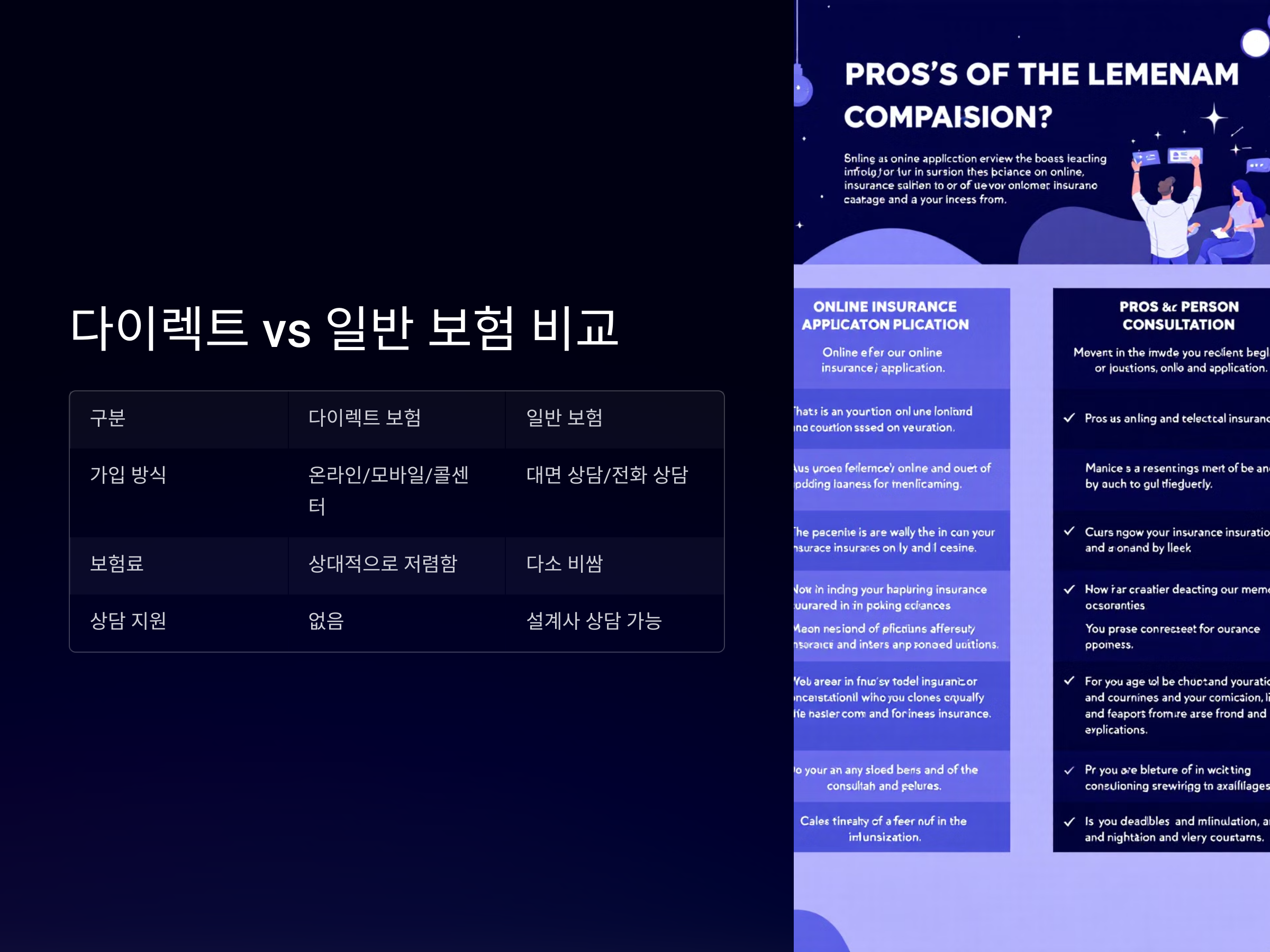 - 설계사의 상담 없음: 보험 상품에 대한 상세한 설명이 부족할 수 있음.
