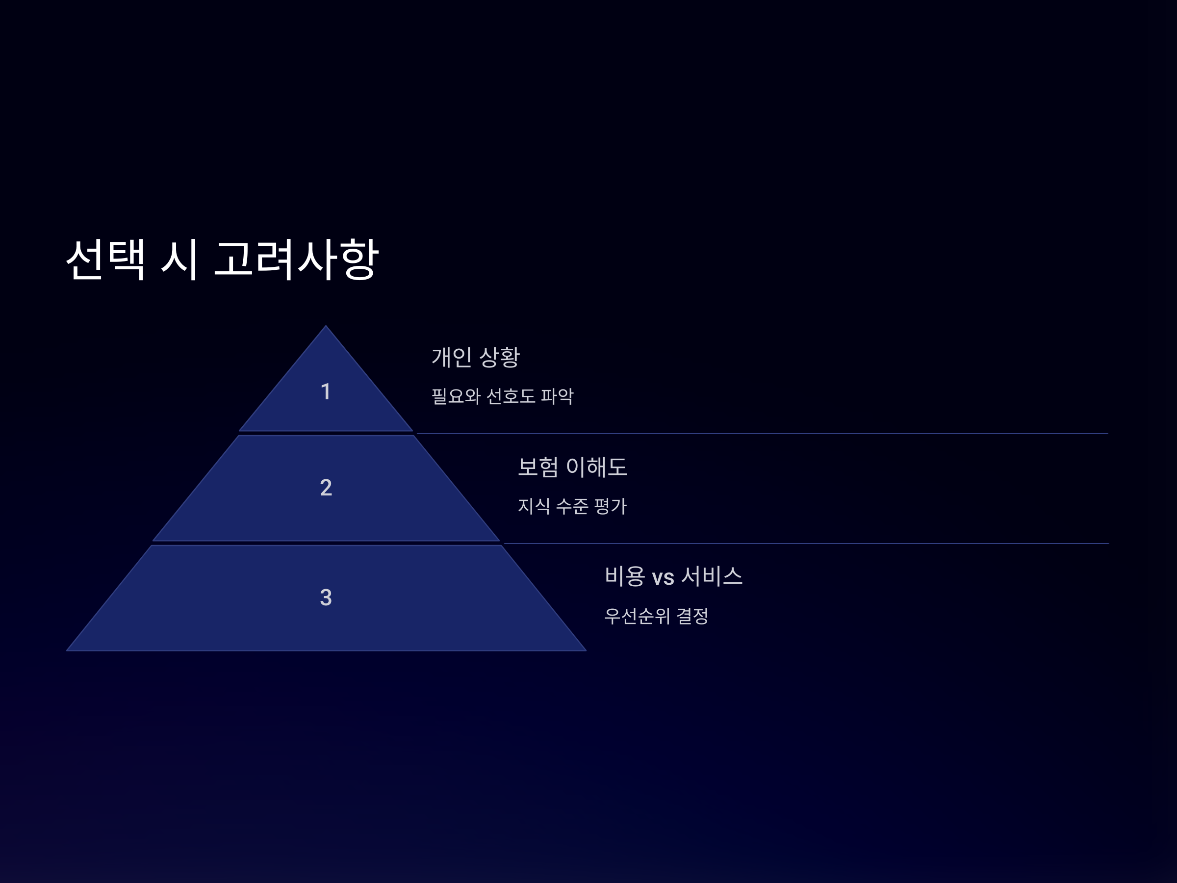 - 자기주도적인 관리 필요: 보장 내용과 약관을 스스로 확인하고 이해해야 함.