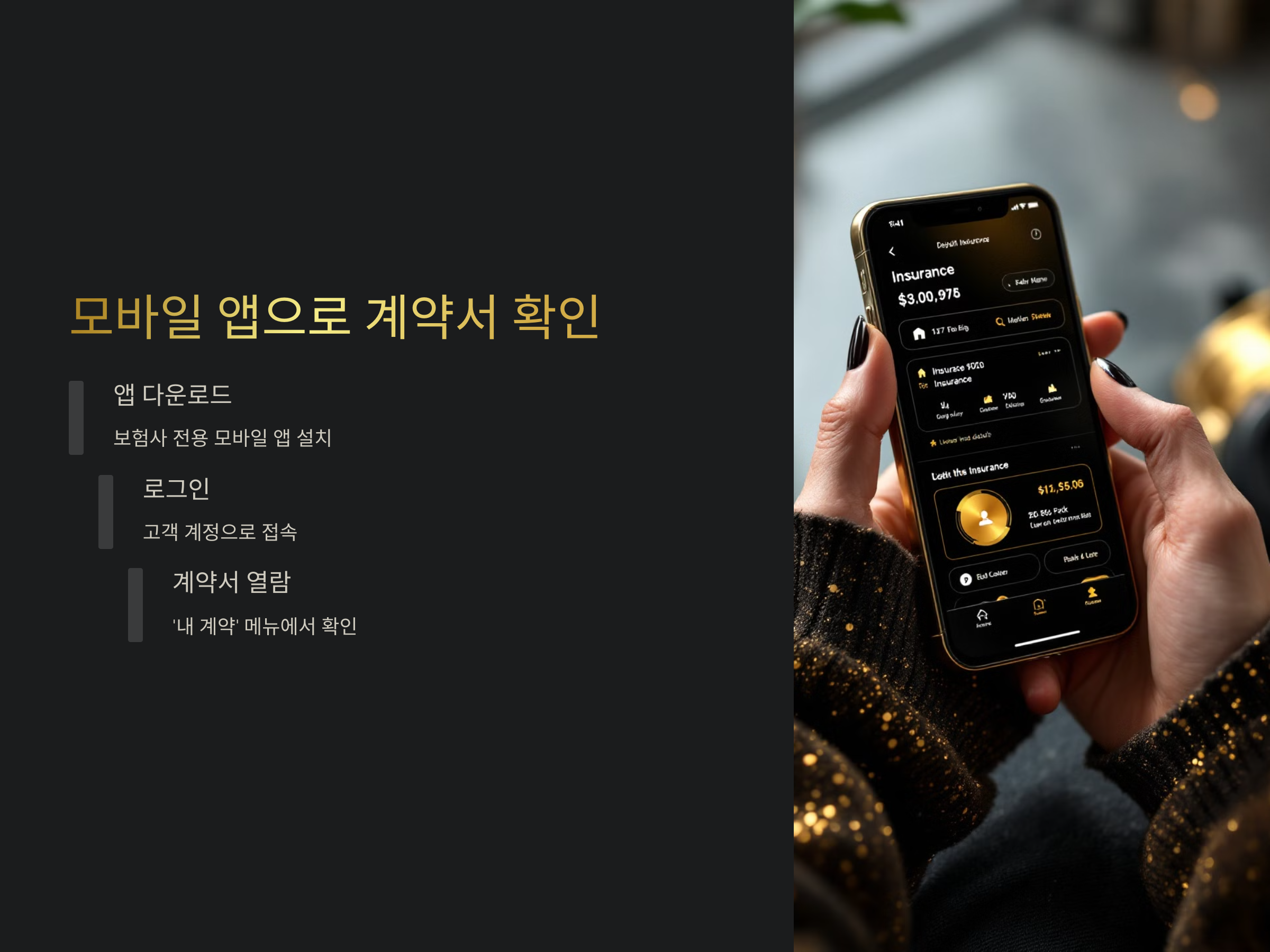 - 앱 로그인: 해당 보험사의 모바일 앱을 다운로드한 후, 고객 계정으로 로그인합니다.