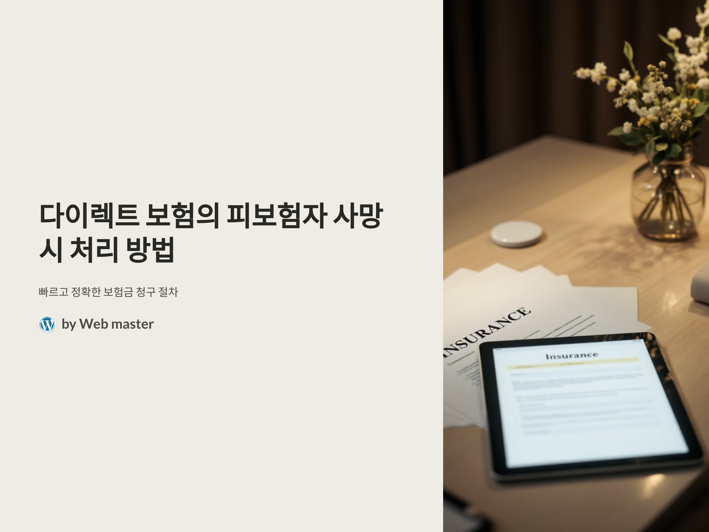 다이렉트 보험은 온라인을 통해 쉽게 가입할 수 있는 장점이 있지만, 피보험자가 사망했을 때 보험금 청구 과정이 다소 복잡할 수 있습니다. 이 글에서는 다이렉트 보험에서 피보험자가 사망했을 때, 보험금을 청구하는 방법과 그 과정에서 고려해야 할 중요한 사항들을 정리하여 안내합니다. 사망 후의 보험금 청구 절차를 이해하고 미리 준비함으로써, 만약의 상황에서도 빠르고 정확하게 처리를 할 수 있습니다.