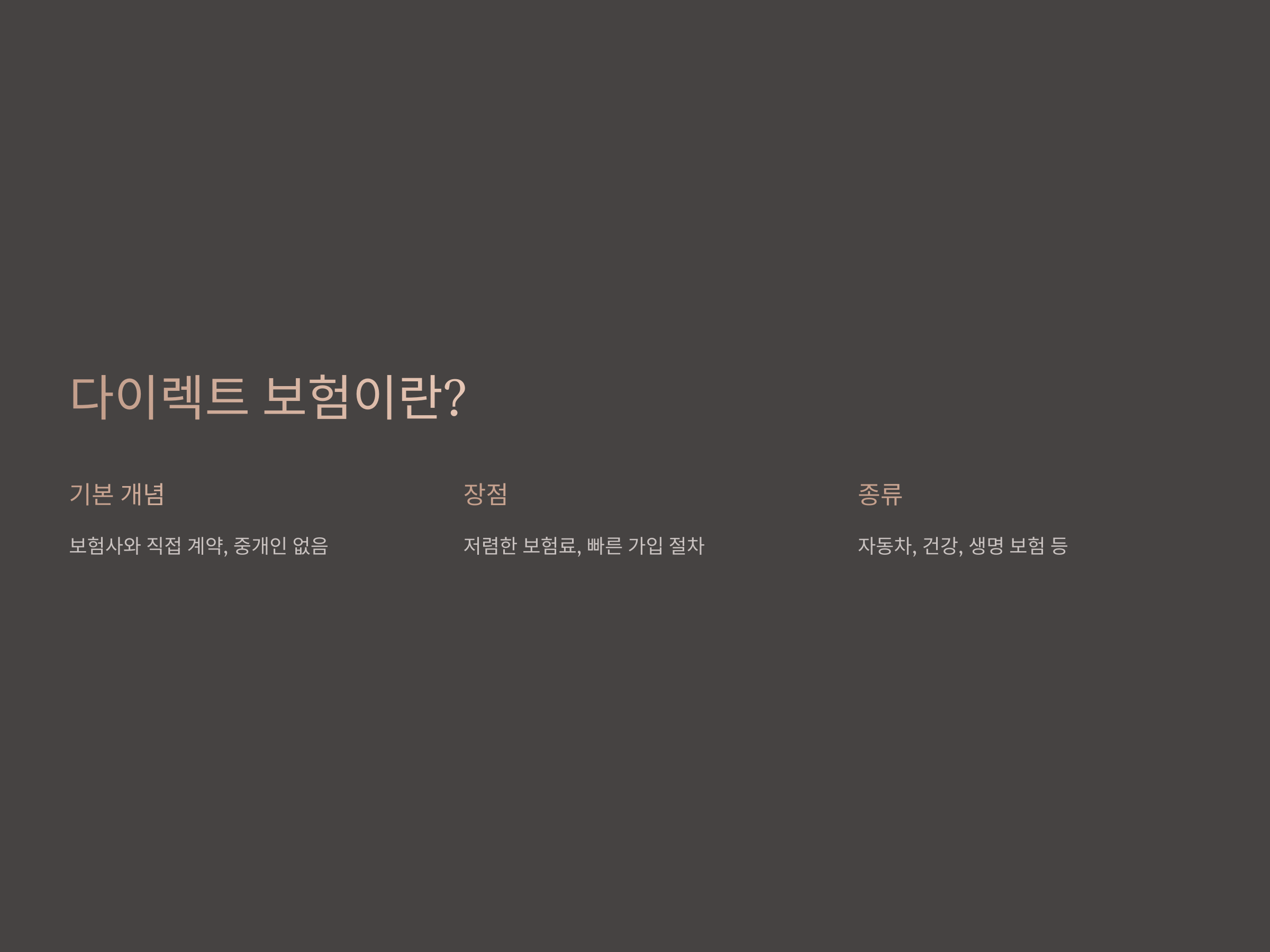 다이렉트 보험은 보험 가입자가 보험 설계사를 통해 가입하는 것이 아니라, 보험 회사와 직접 계약을 체결하는 형태의 보험입니다. 이를 통해 소비자는 중개인을 거치지 않고, 온라인 또는 전화 등을 통해 보험 상품을 가입할 수 있습니다. 다이렉트 보험은 대면 계약이 없으므로, 비교적 저렴한 보험료와 더 빠른 가입 절차를 제공합니다. 다이렉트 보험은 자동차 보험, 건강 보험, 생명 보험 등 다양한 종류가 있으며, 그 중 연말정산 시 공제를 받을 수 있는 상품도 다수 존재합니다.