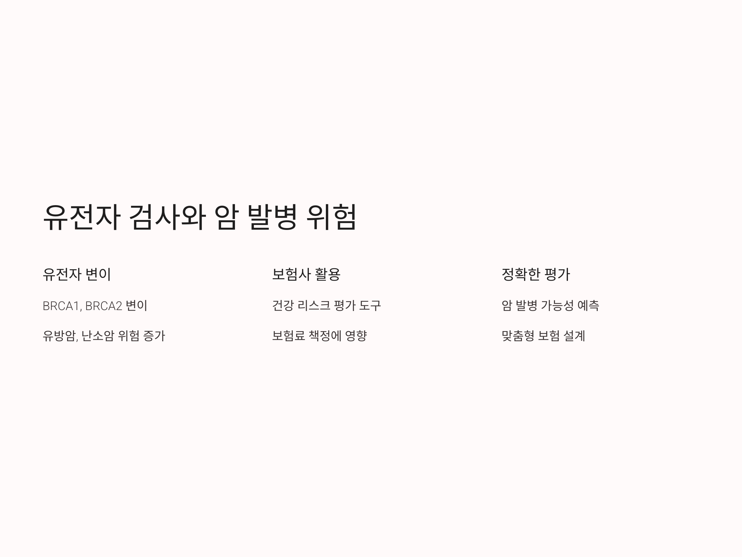이러한 유전자 정보는 보험사가 가입자의 건강 리스크를 평가하는 데 중요한 요소가 될 수 있습니다. 유전자 검사를 통해 특정 암에 대한 발병 확률이 높다고 판별되면, 보험사는 이를 반영해 보험료를 책정할 수 있습니다. 즉, 유전자 검사는 보험사의 리스크 관리 도구로 사용되며, 보험료에 직결되는 요소로 작용할 수 있습니다.