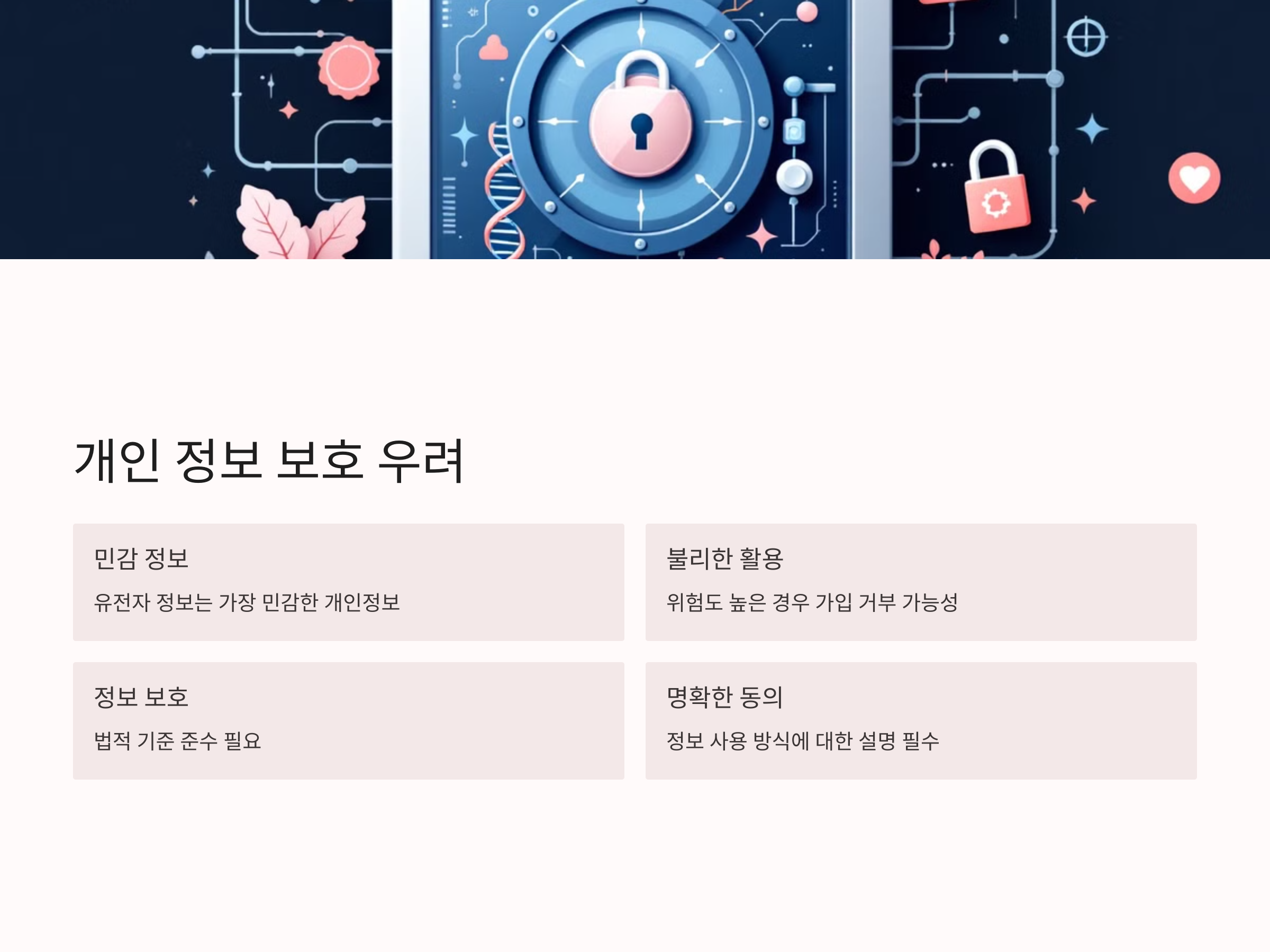 유전자 검사를 요구하는 다이렉트 암보험에서 중요한 문제 중 하나는 바로 개인 정보 보호입니다. 유전자 정보는 민감한 개인 정보로, 이를 제공해야 하는 부담이 있을 수 있습니다. 또한, 유전자 검사를 통해 암 발병 위험도가 높다고 판단되면, 보험사에서 이를 불리하게 활용할 가능성에 대한 우려도 존재합니다.