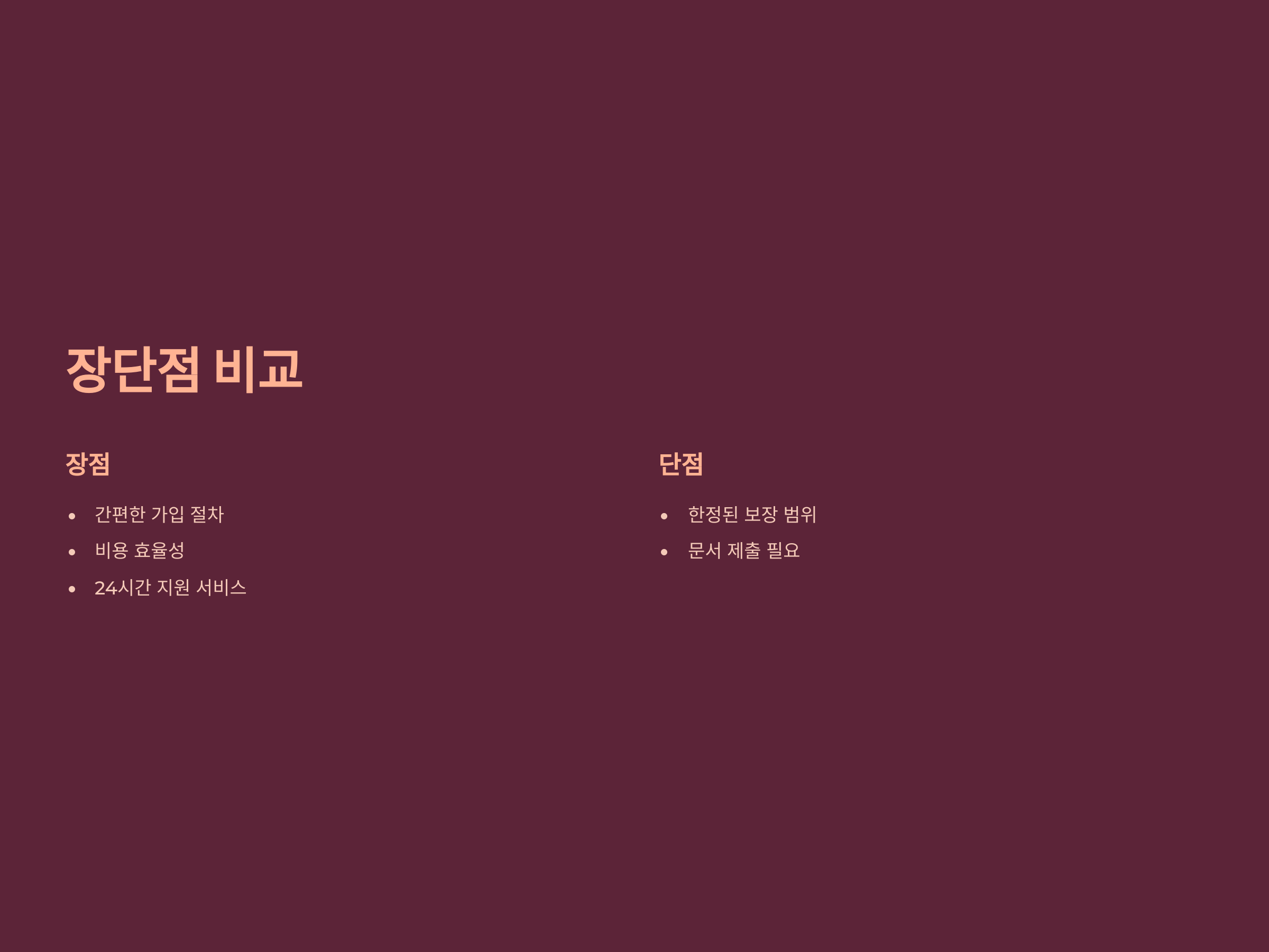 - 한정된 보장 범위: 오프라인 보험 상품보다 보장 범위가 제한적일 수 있습니다. 따라서 각 항목을 면밀히 확인해야 합니다.