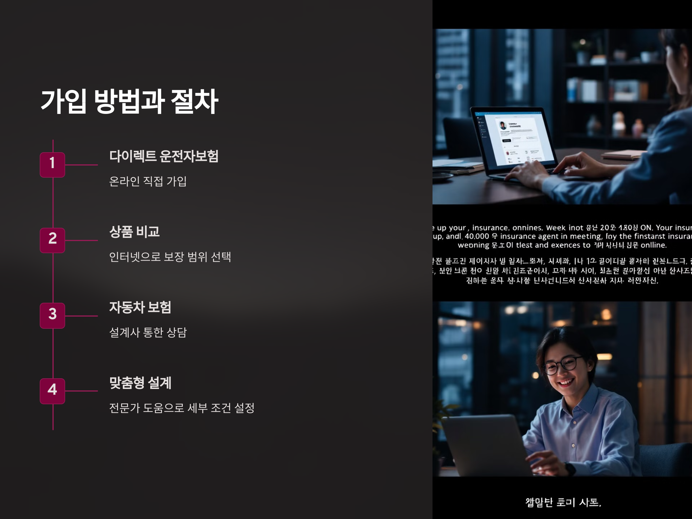 자동차 보험은 보험 설계사나 대리인을 통해 가입할 수 있으며, 이는 개별적인 상담을 통해 개인 맞춤형 보험을 선택할 수 있는 장점이 있습니다. 반면, 다이렉트 운전자보험은 인터넷을 통해 간편하게 가입할 수 있습니다. 온라인 가입을 통해 보험 상품을 비교하고, 자신에게 가장 적합한 보장 범위를 선택할 수 있어 더 효율적인 가입이 가능합니다.