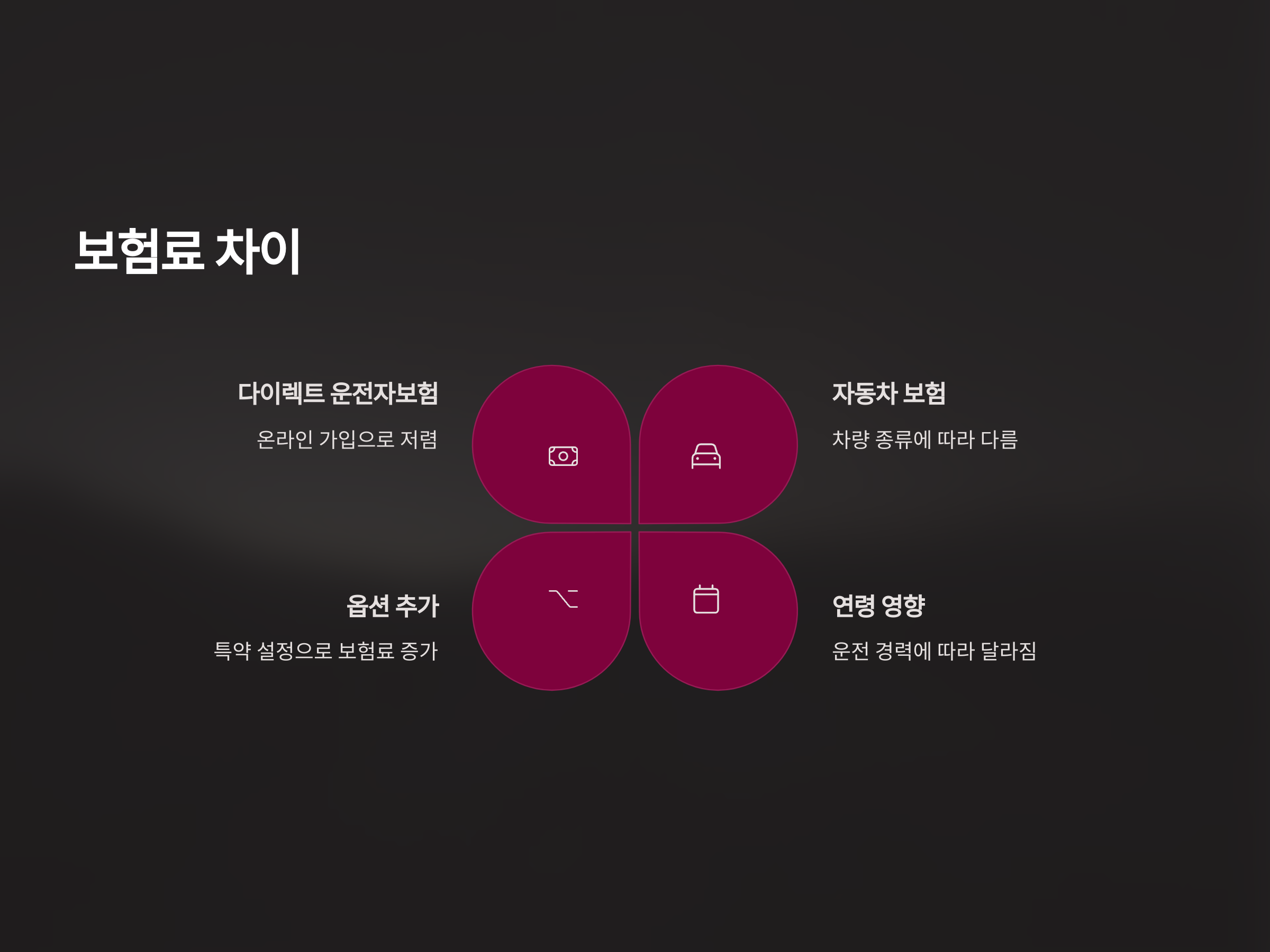 자동차 보험의 경우, 다양한 옵션을 추가하거나 특약을 설정할 수 있는 점이 장점이지만, 그만큼 보험료가 비쌀 수 있습니다. 이와 비교하여 다이렉트 운전자보험은 기본적인 보장을 제공하면서도 보험료가 상대적으로 낮은 편입니다.