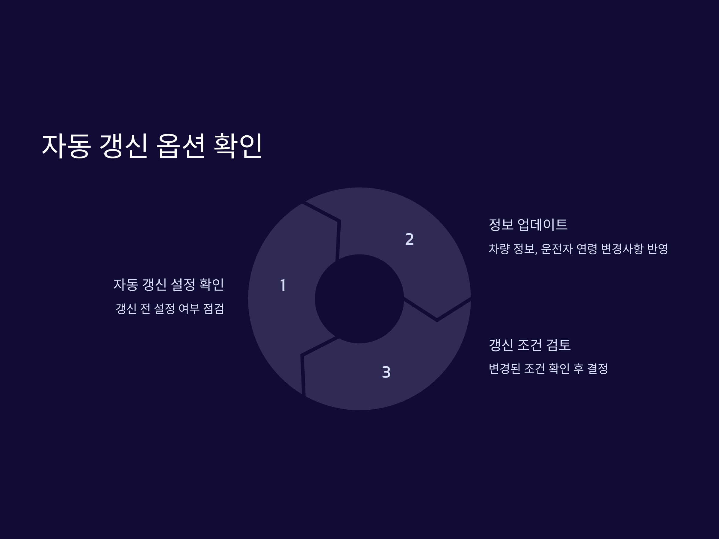 자동 갱신 옵션을 설정한 경우에도 자동 갱신 전에 미리 확인하여 갱신 사항을 점검하는 것이 중요합니다. 만약 조건이 변경되었거나 보험료가 비쌌다면, 직접 다시 비교하여 갱신 여부를 결정할 수 있습니다.
