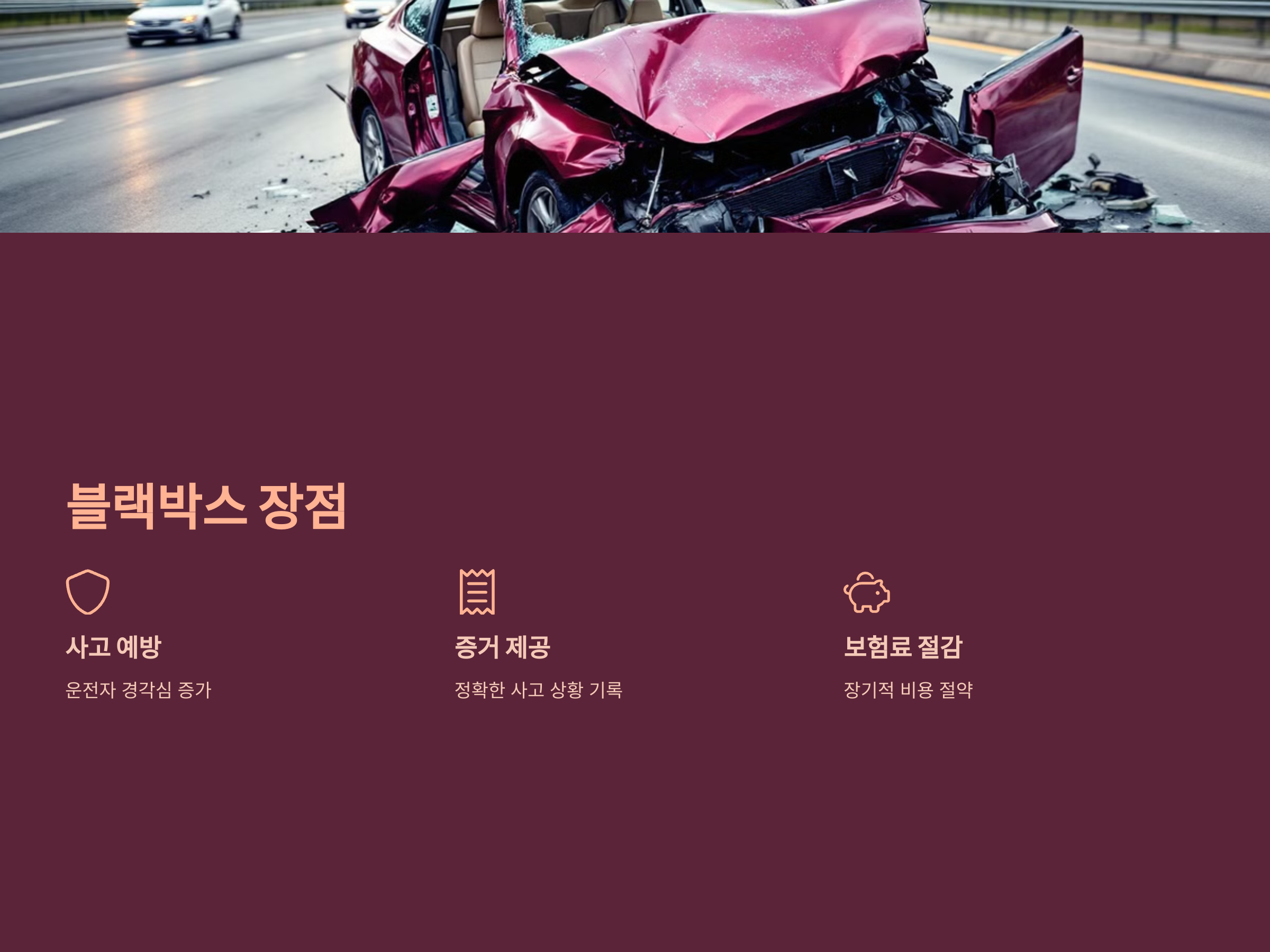 블랙박스를 장착하는 것은 단순히 보험료를 절약하는 방법에 그치지 않습니다. 블랙박스를 장착함으로써 여러 가지 장점이 있습니다.