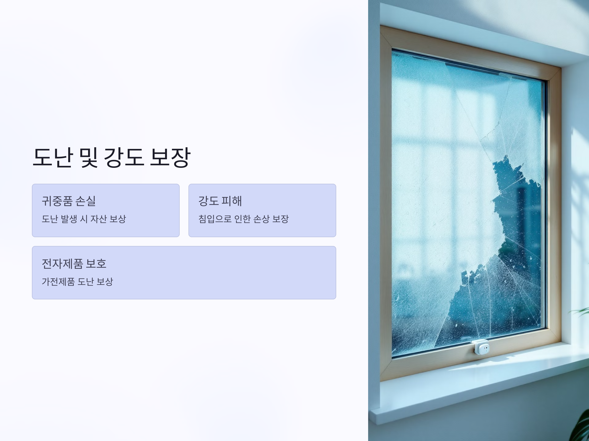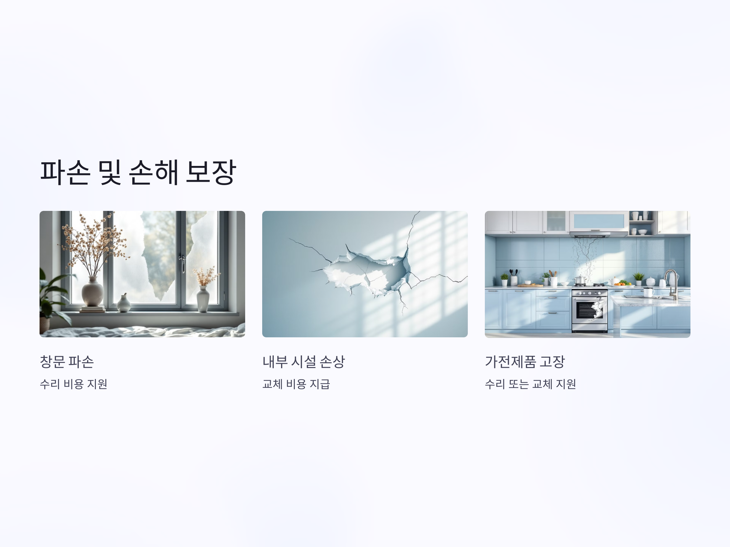 파손된 시설이나 가전제품을 수리하거나 교체하는 데 드는 비용을 모두 보험에서 보장받을 수 있기 때문에, 예상치 못한 수리비용 부담을 줄일 수 있습니다. 이를 통해 집을 유지하고 관리하는 데 큰 도움이 되며, 경제적 부담을 덜어줍니다.