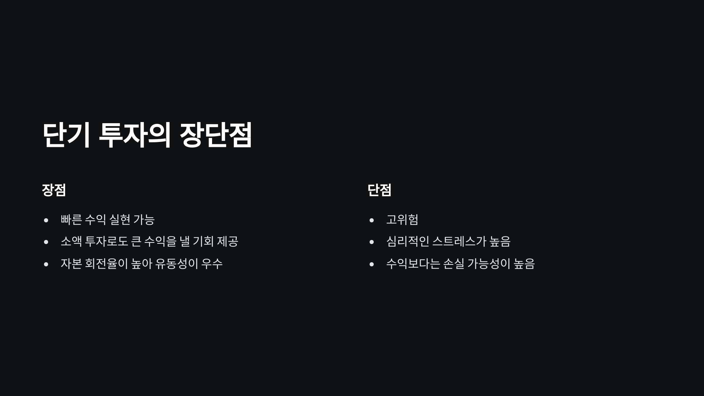 단기 투자의 장점과 단점