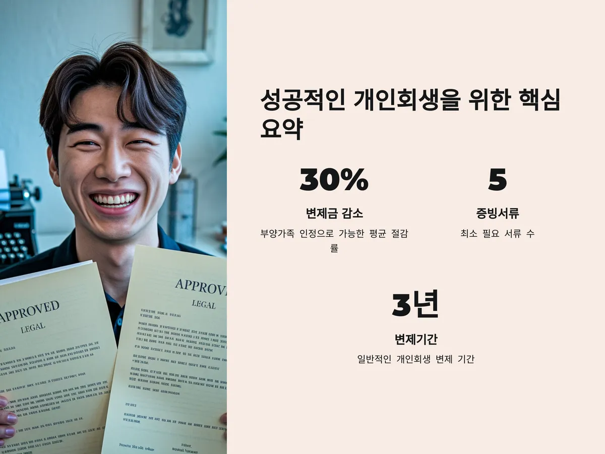 개인회생은 ‘최소한의 생계’를 보장받으면서 빚을 갚는 제도입니다. 이 과정에서 부양가족 수는 최저생계비 산정의 핵심 지표입니다. 예를 들어 1인가구보다 4인가구는 생계비 기준이 높고, 그만큼 변제금은 낮아집니다. 따라서 부양가족 수를 얼마나 인정받느냐에 따라 매달 갚아야 하는 금액 차이가 수십만 원씩 날 수 있습니다.