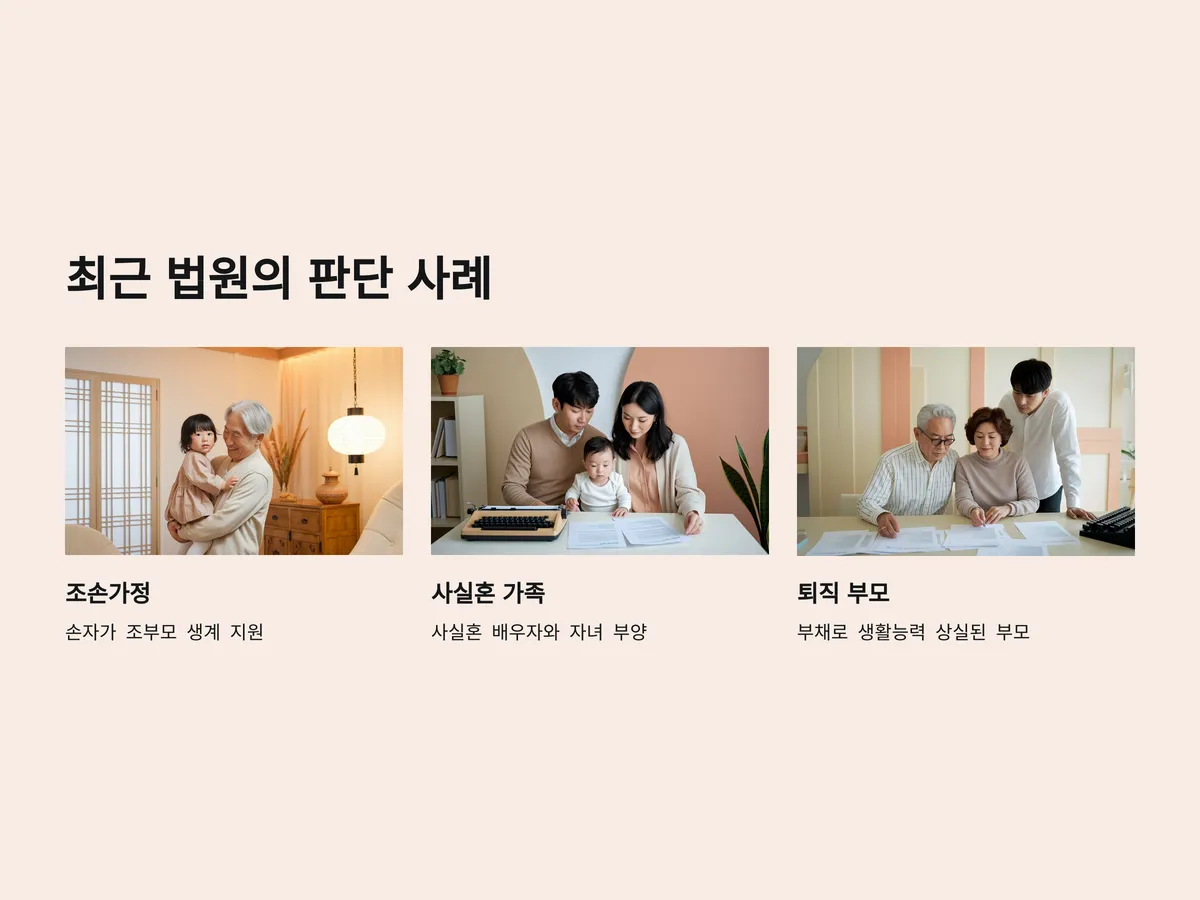최근에는 다양한 가족구조가 늘어나면서 법원도 유연한 판단을 하고 있습니다. 특히 다음과 같은 사례에서 부양가족으로 인정된 경우가 많습니다: